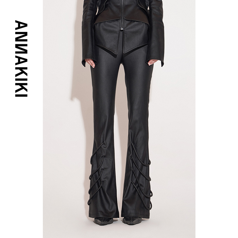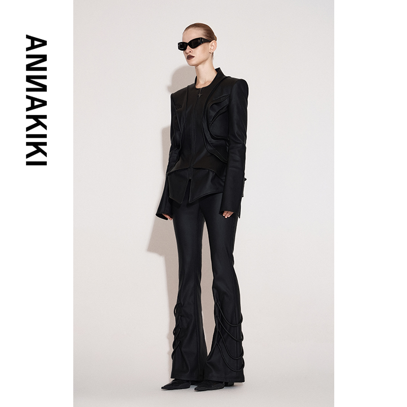 女春秋新款 休闲直筒慵懒松弛感裤 高腰垂感窄版 裤 子 西装 黑色阔腿裤