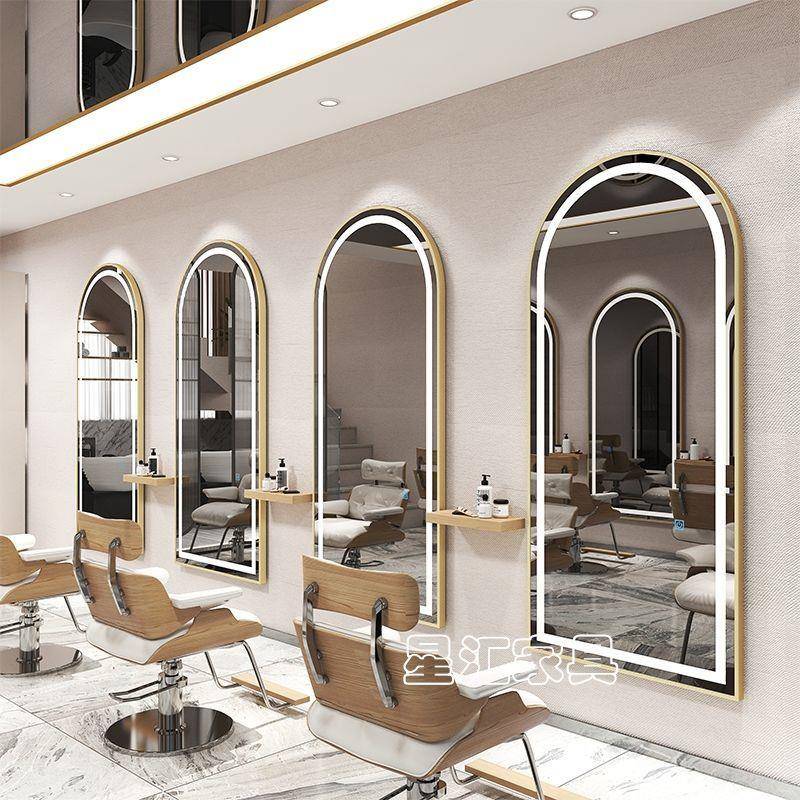 理发店镜台美发店镜子发廊专用LED带灯网红挂墙染烫美容镜子潮款