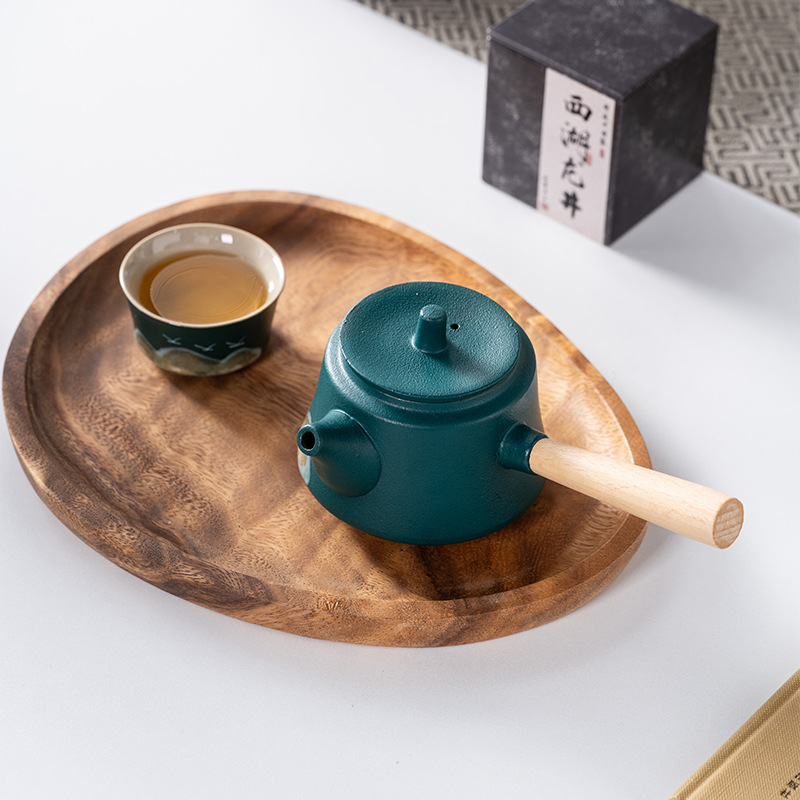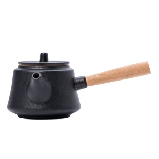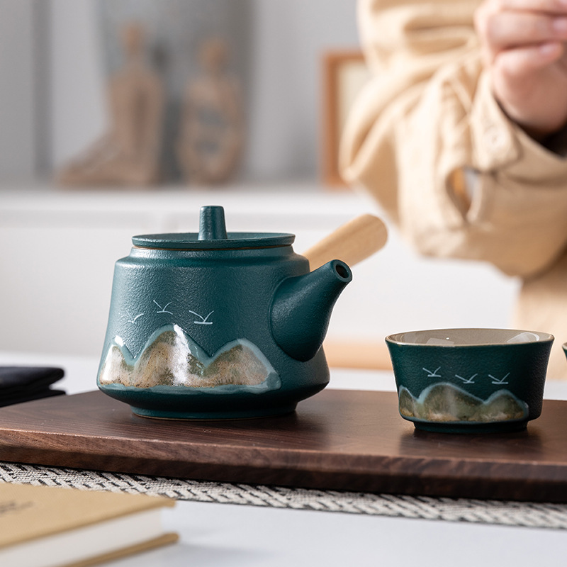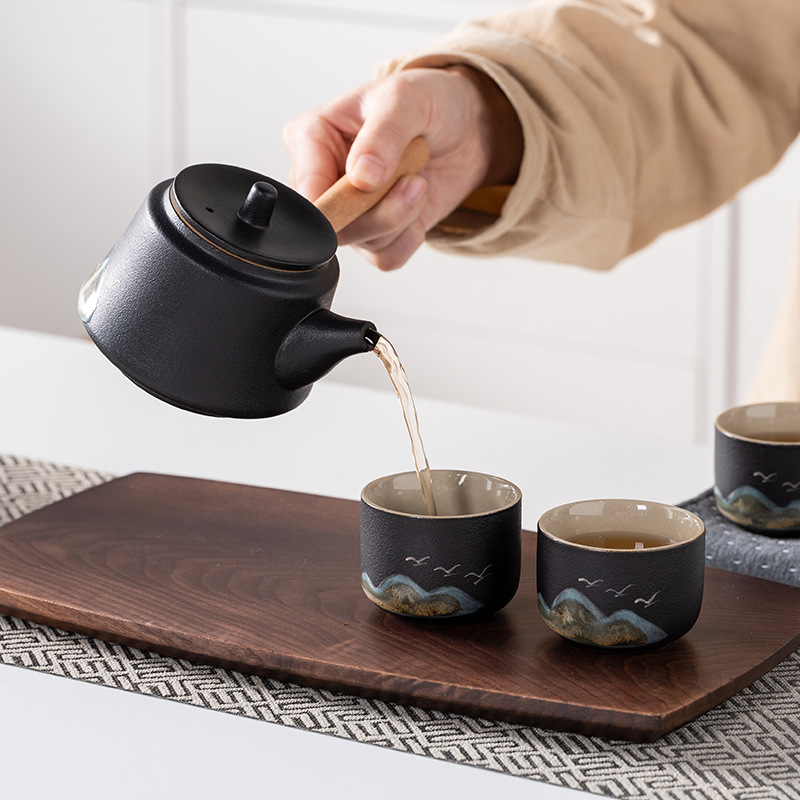 手绘泡茶壶万里山河功夫茶具远山小茶壶侧把单壶黑陶茶海家用日式