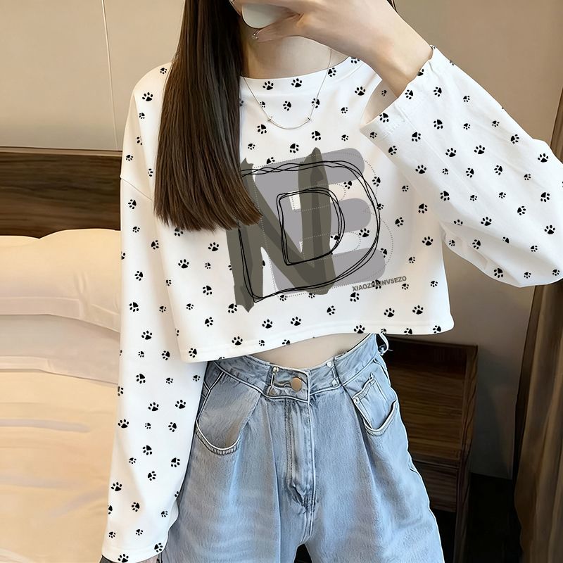 辣妹修身 打底衫 显瘦上衣 T恤女春秋内搭短款 设计感小众正肩V领长袖