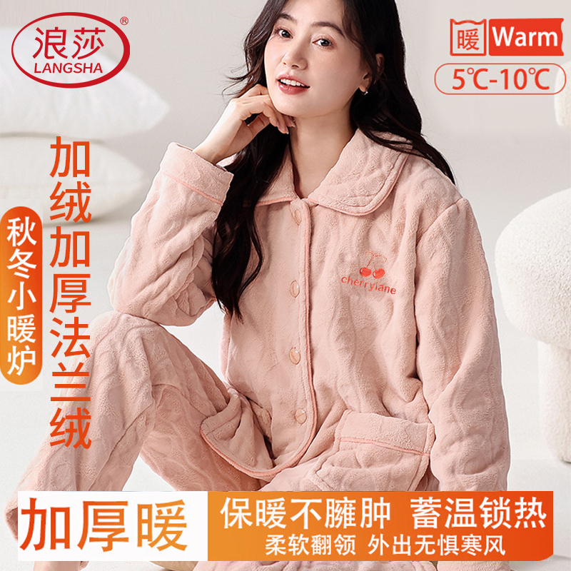 秋冬保暖家居服 2025新款 浪莎睡衣女法兰绒冬季 加绒加厚珊瑚绒大码