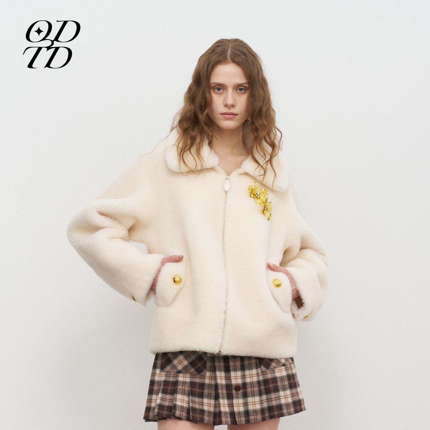 美利如羊毛夹克皮毛一体外套上衣女 ODTD25秋冬新款 设计师女装