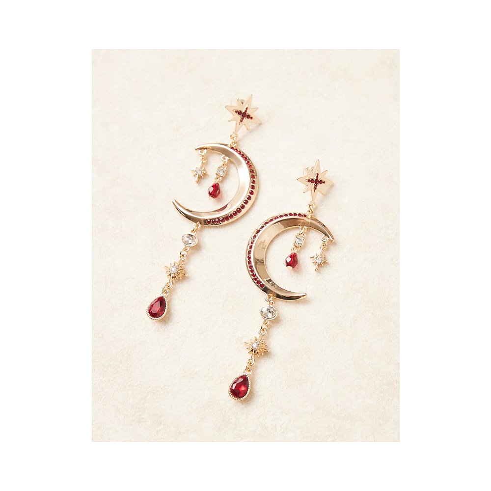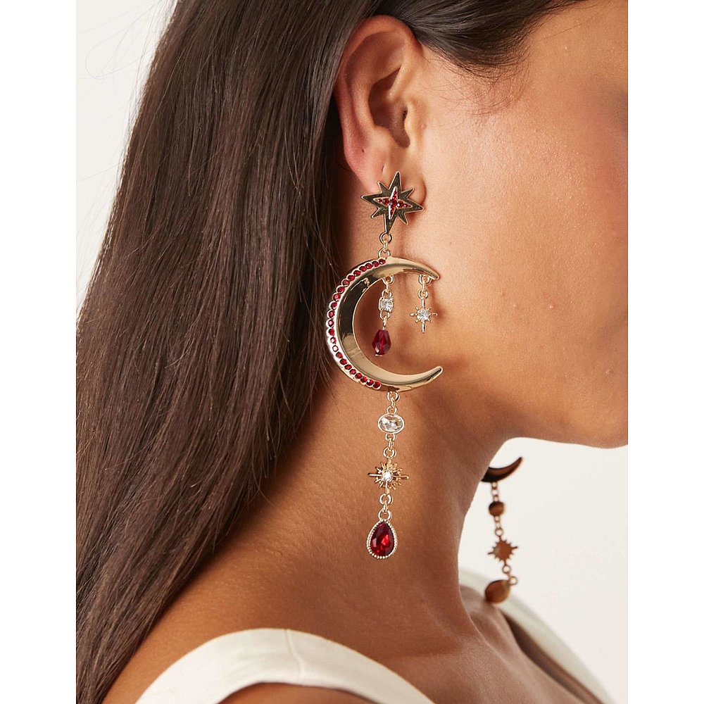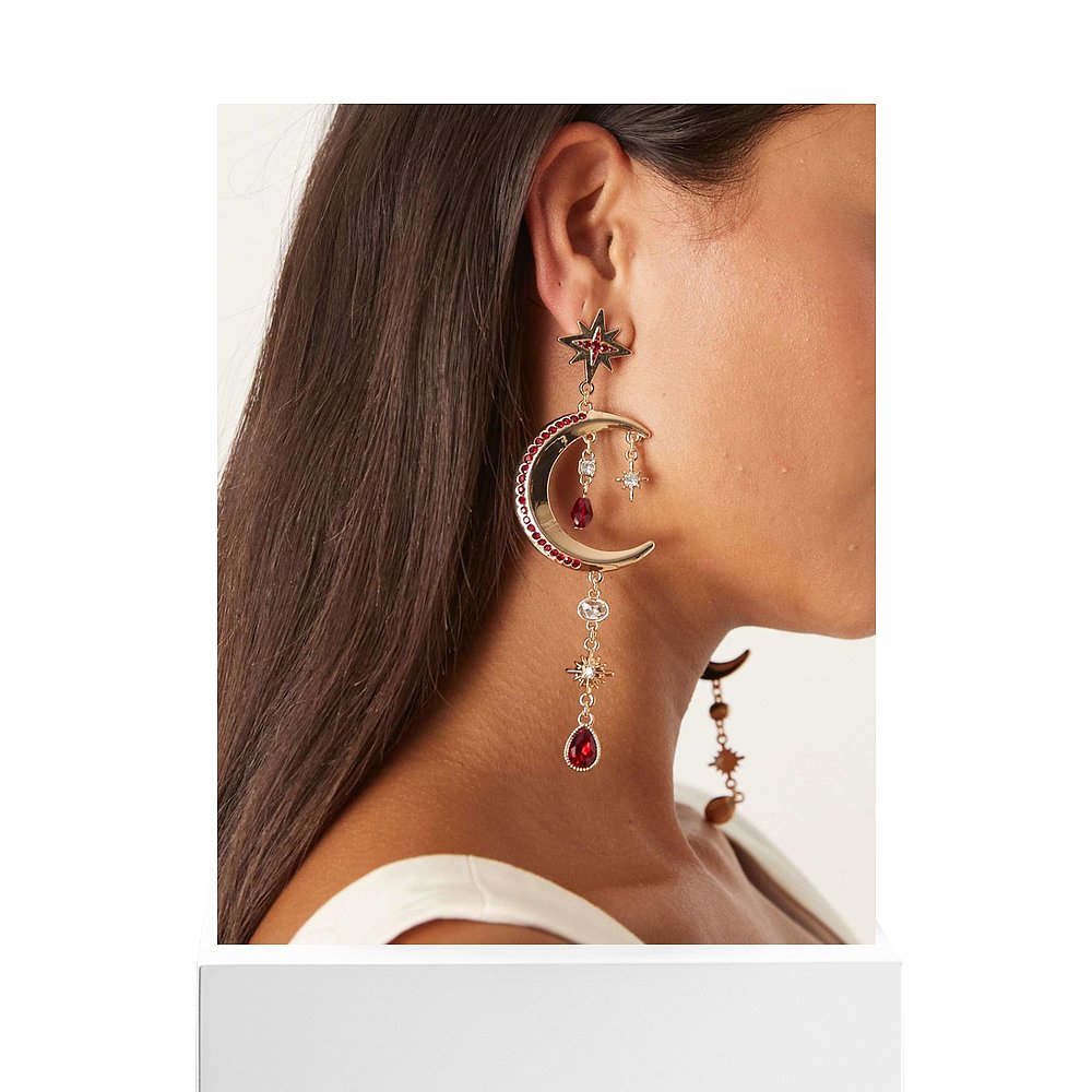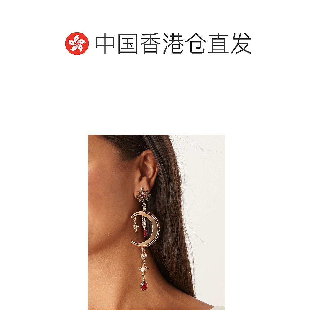 森系小清新蓝色星月耳夹女小巧百搭无耳洞耳环珍珠锆石不对称耳饰