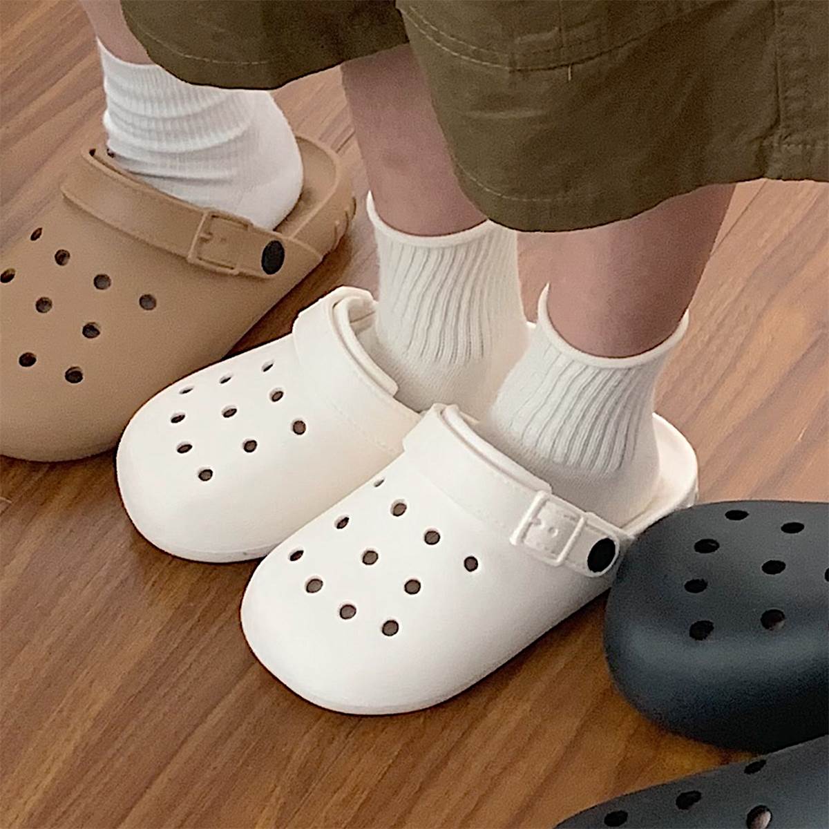 沙滩 夏男女外穿日系eva防滑软底情侣包头凉拖鞋 细细条 亲子洞洞鞋