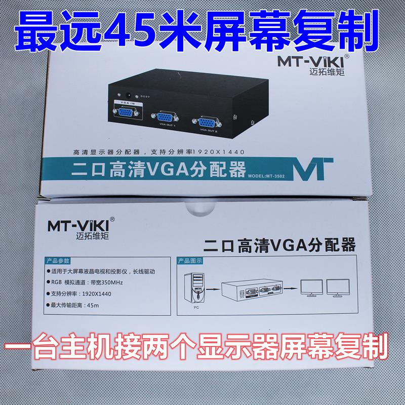 迈拓 vga分配器一分二电脑电视视频显示器分频器1进2出分支分屏器