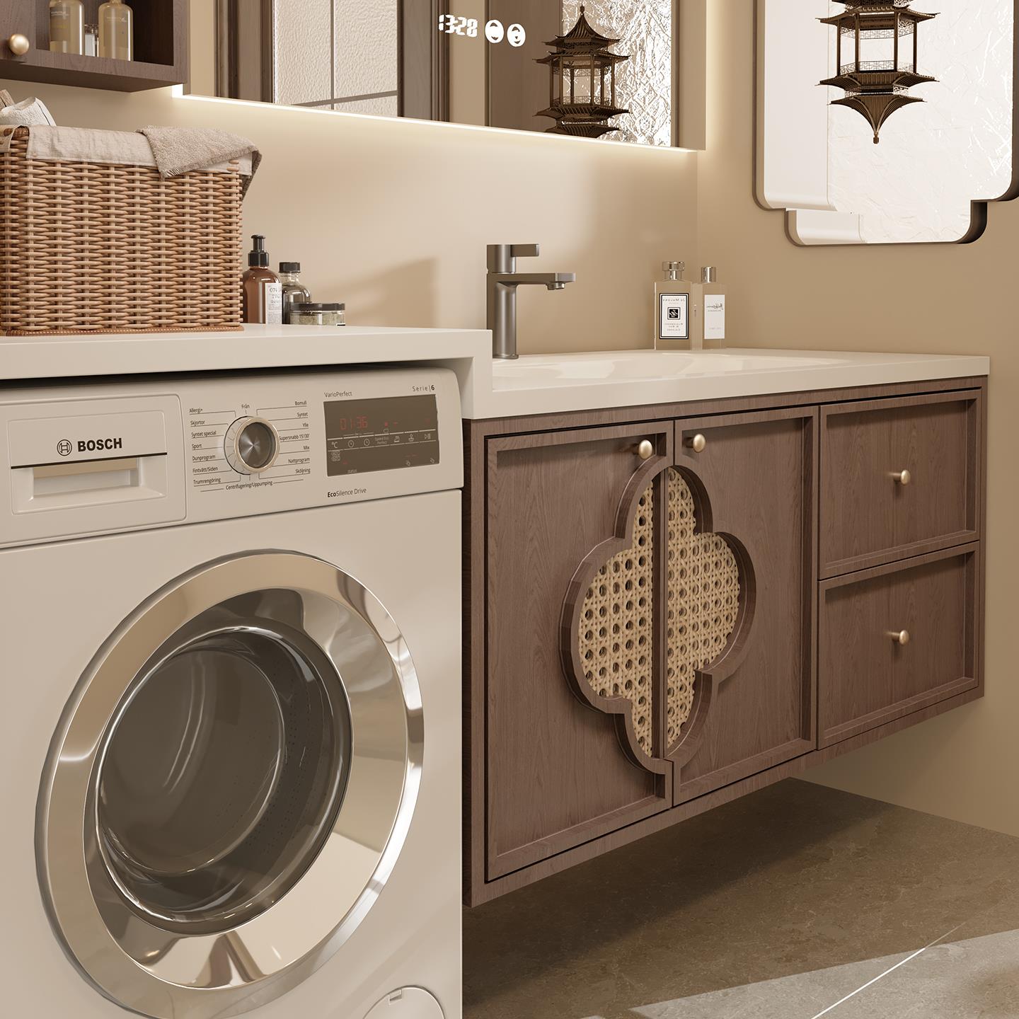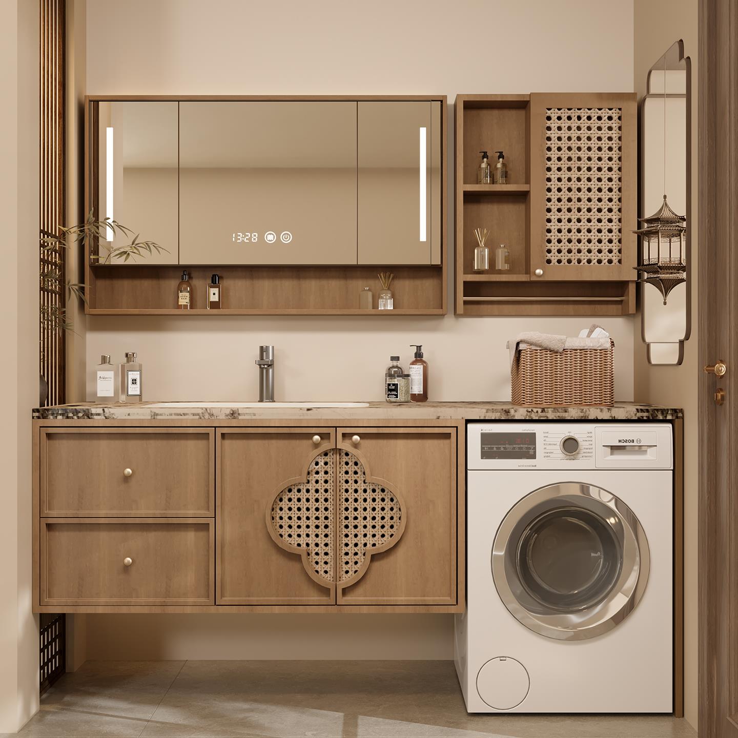 宋式 美学阳台橡木洗衣机一体浴室柜组合卫生间洗漱台洗手池脸盆柜