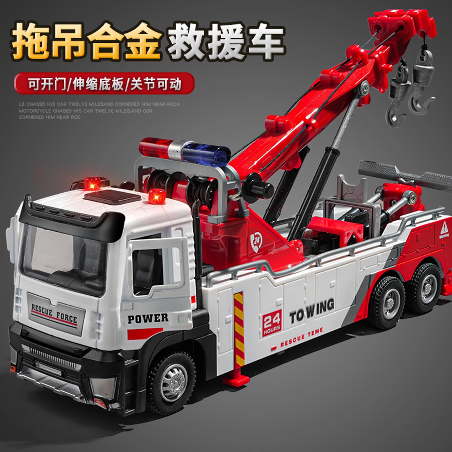 大号拖车玩具男孩工程救援车合金吊车运输车儿童清障车汽车模型车