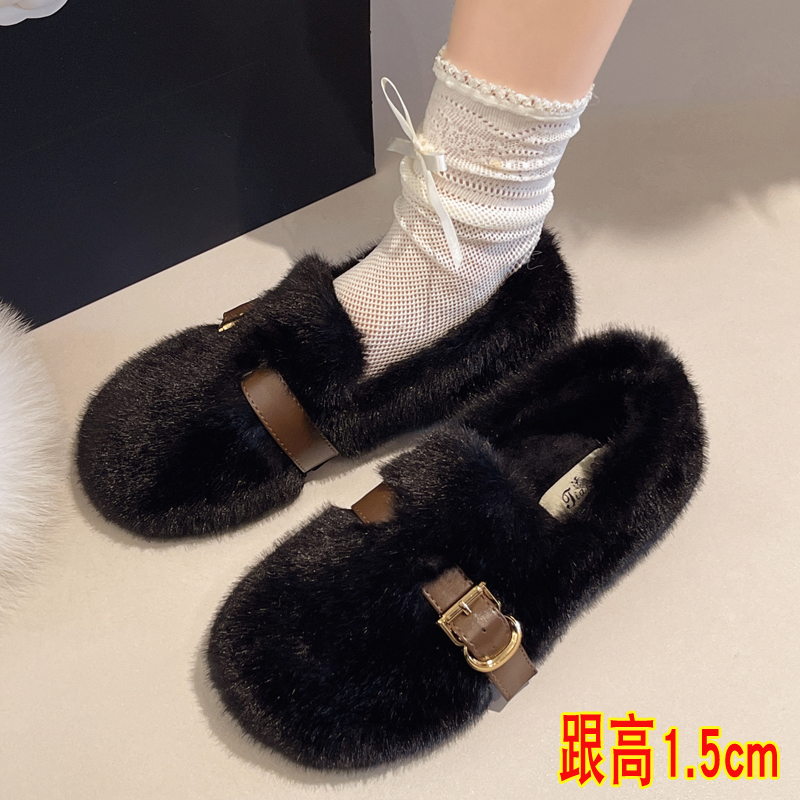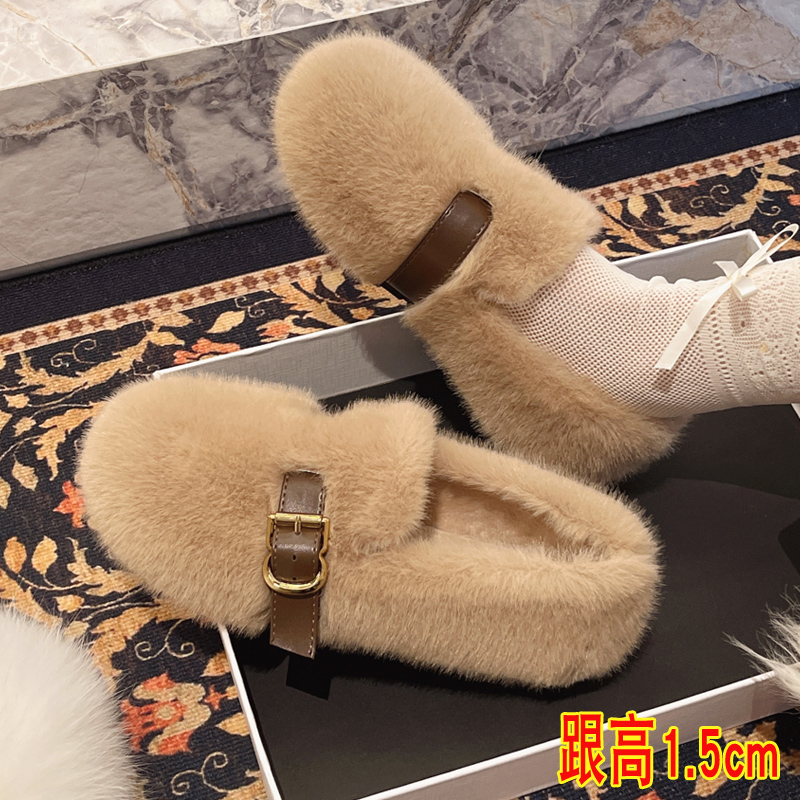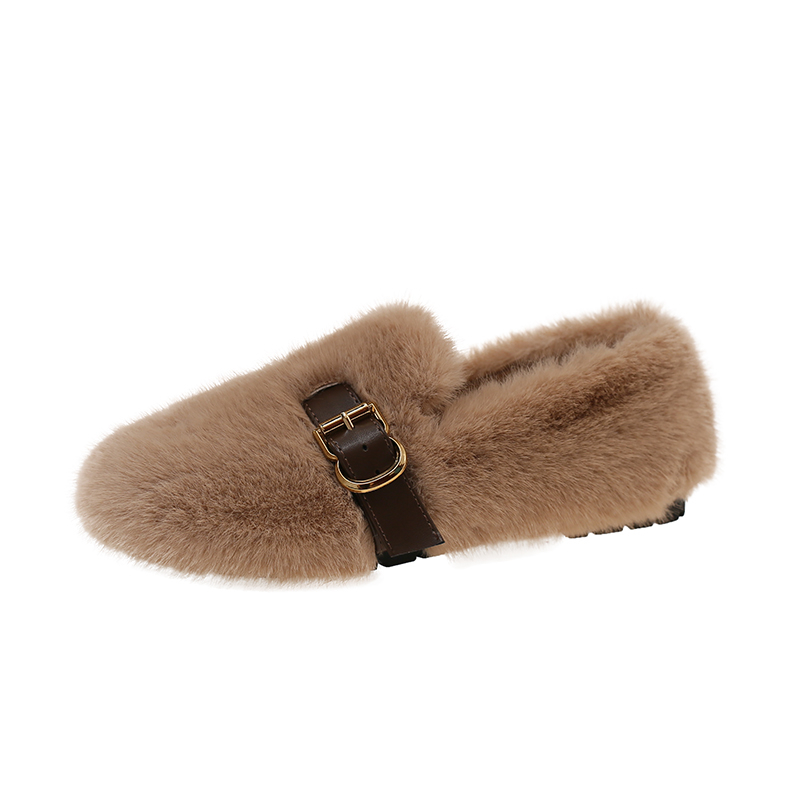 鞋 子时尚 平底女鞋 浅口软底毛毛鞋 单鞋 新款 一脚蹬豆豆鞋 女2025秋季