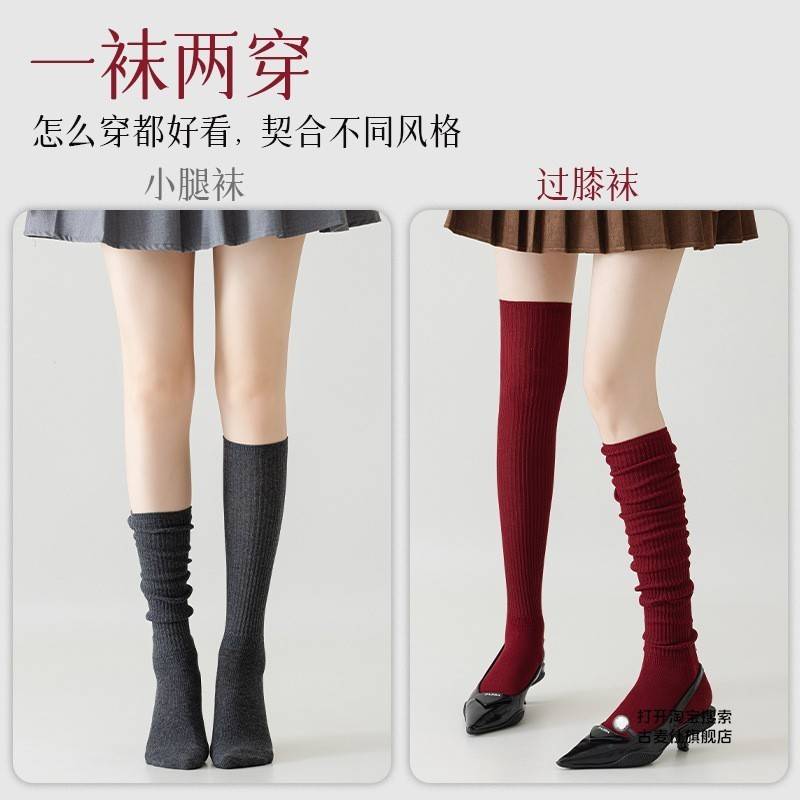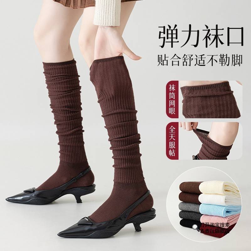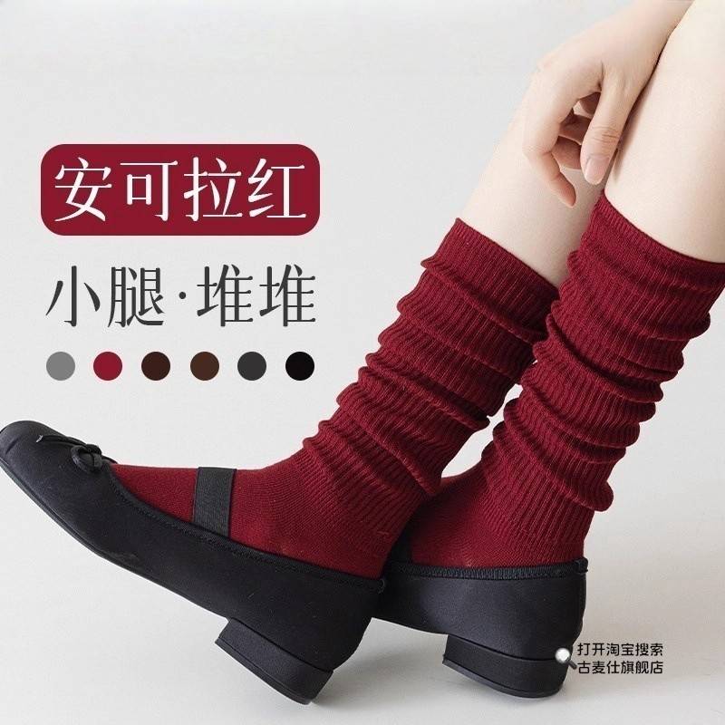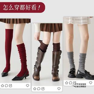 秋季 长筒袜咖色过膝袜ins配长靴堆堆袜中筒袜子安可拉红小腿袜女
