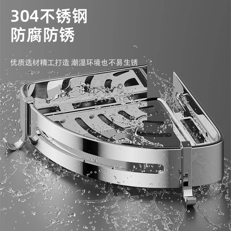 304不锈钢免打孔卫生间置物架浴室厕所三角篮壁挂可拆卸转角收纳