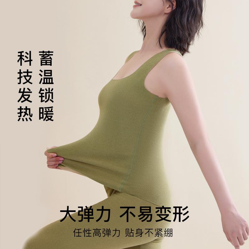 秋冬双面德绒发热磨毛保暖女士背心无痕美背U领内搭打底背心外穿