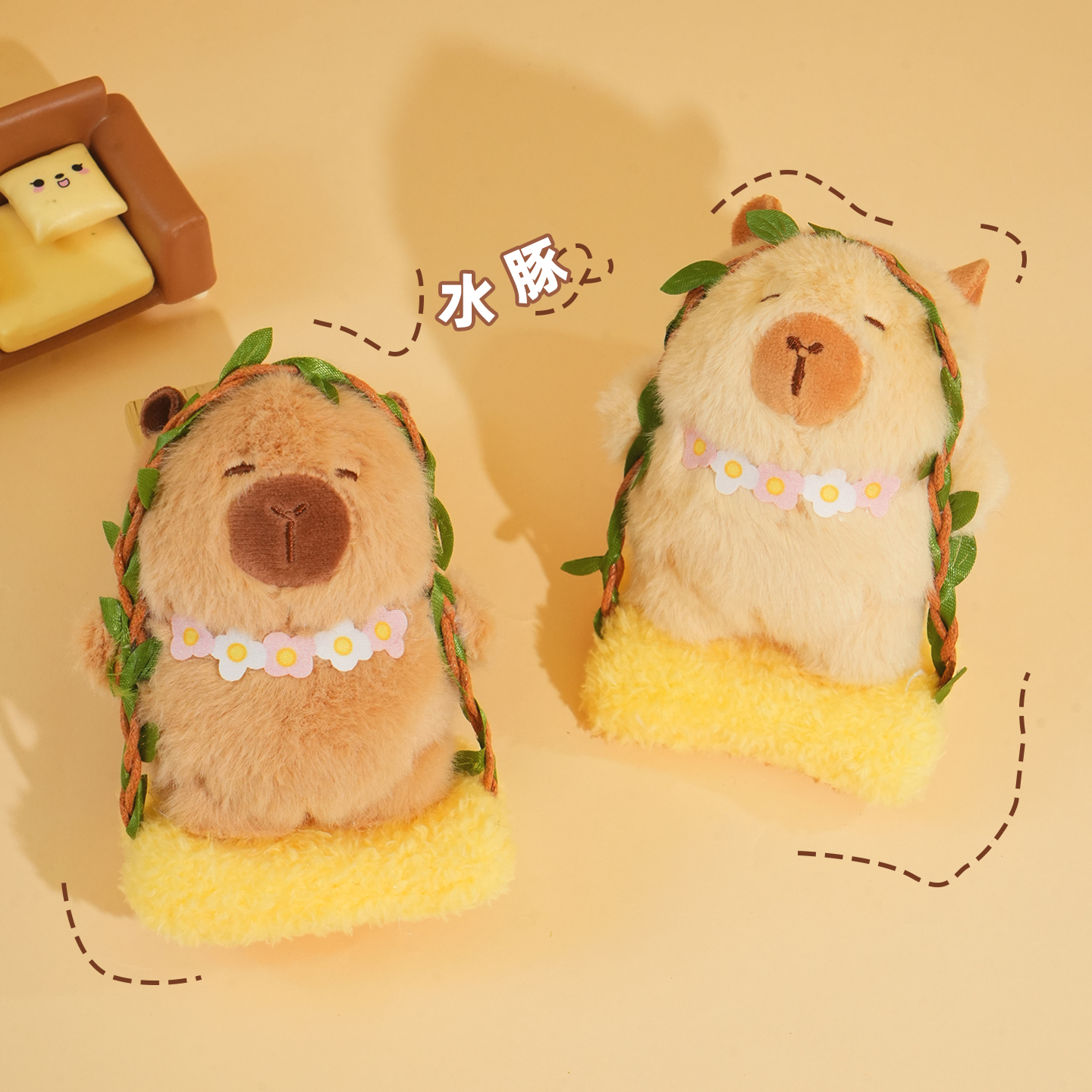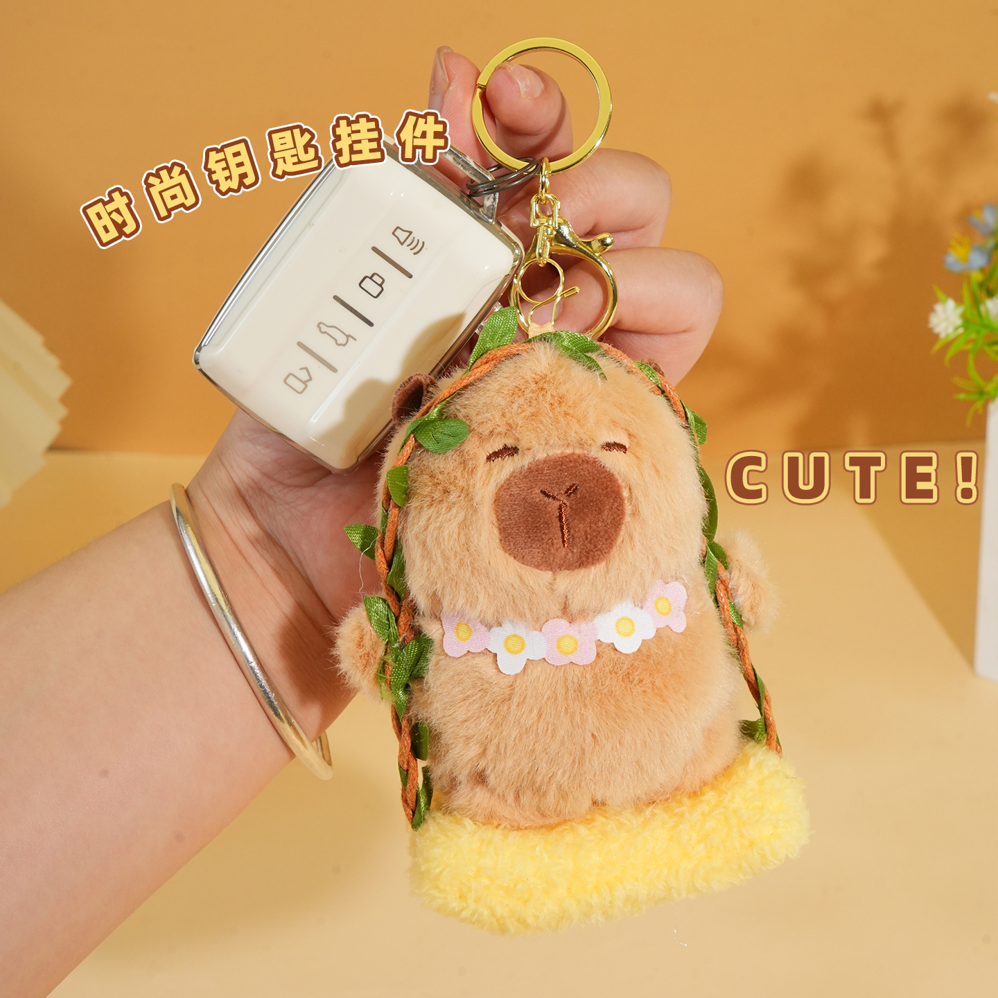 新款 毛绒荡秋千水豚挂件卡皮巴拉汽车钥匙扣可爱书包包挂饰钥匙链