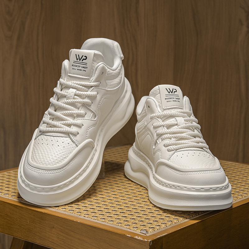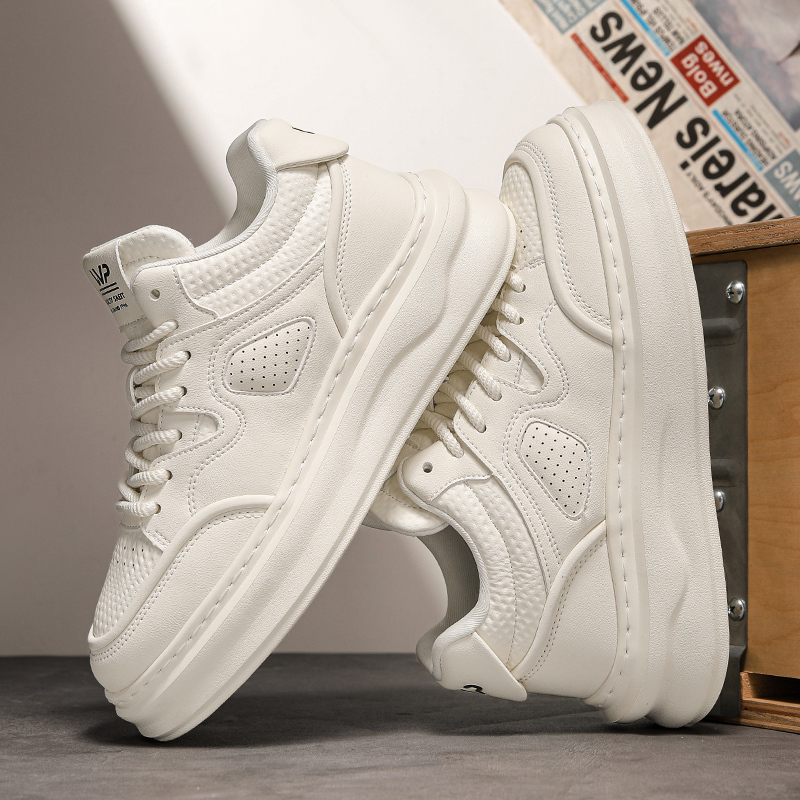 靴子 真皮防水厚底增高工装 森马马丁靴男秋季 高帮百搭休闲白色板鞋