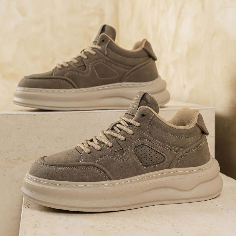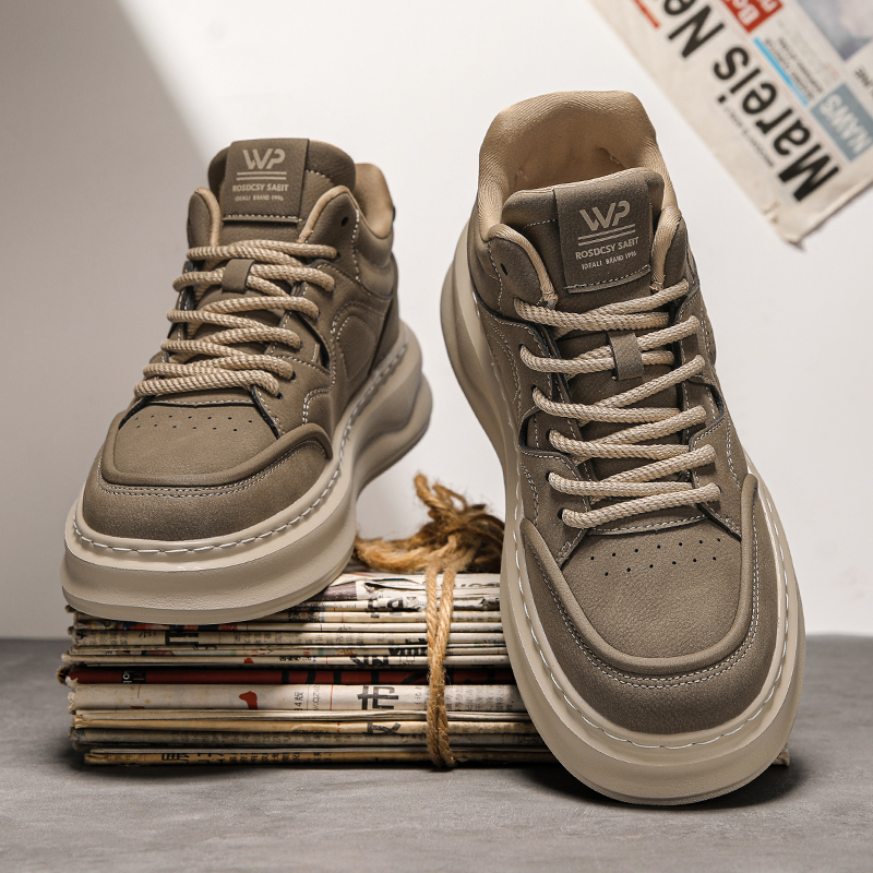 百搭休闲皮面防水青少年跑步运动篮球增高老爹鞋 森马高帮男鞋 秋季