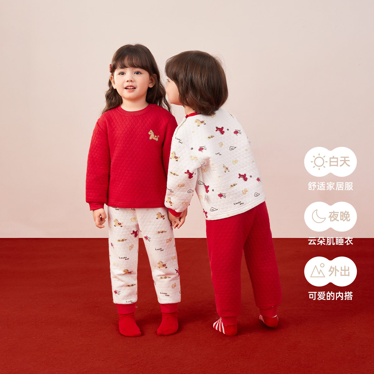 小女孩秋装 儿童睡衣宝宝红色秋衣秋裤 男童内衣套装 2025秋冬新品