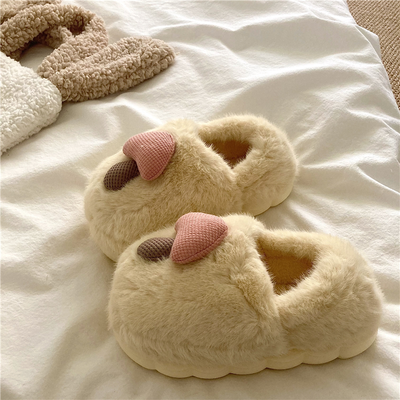 室内家居家防滑厚底踩屎感毛毛绒保暖情侣拖鞋 秋冬季 女 男士 棉拖鞋