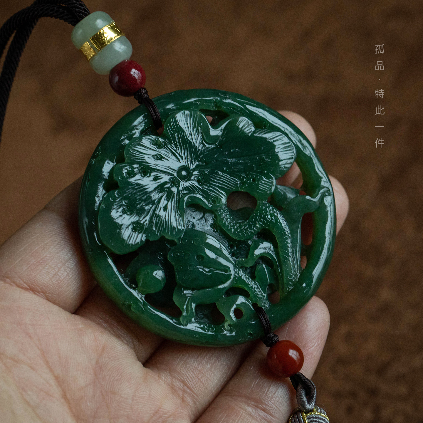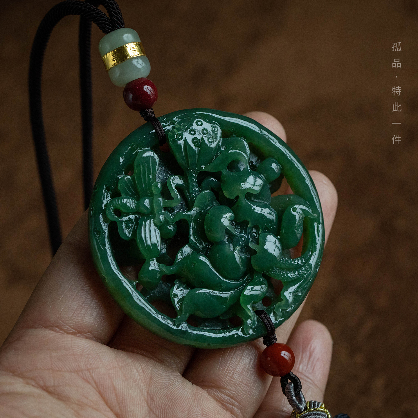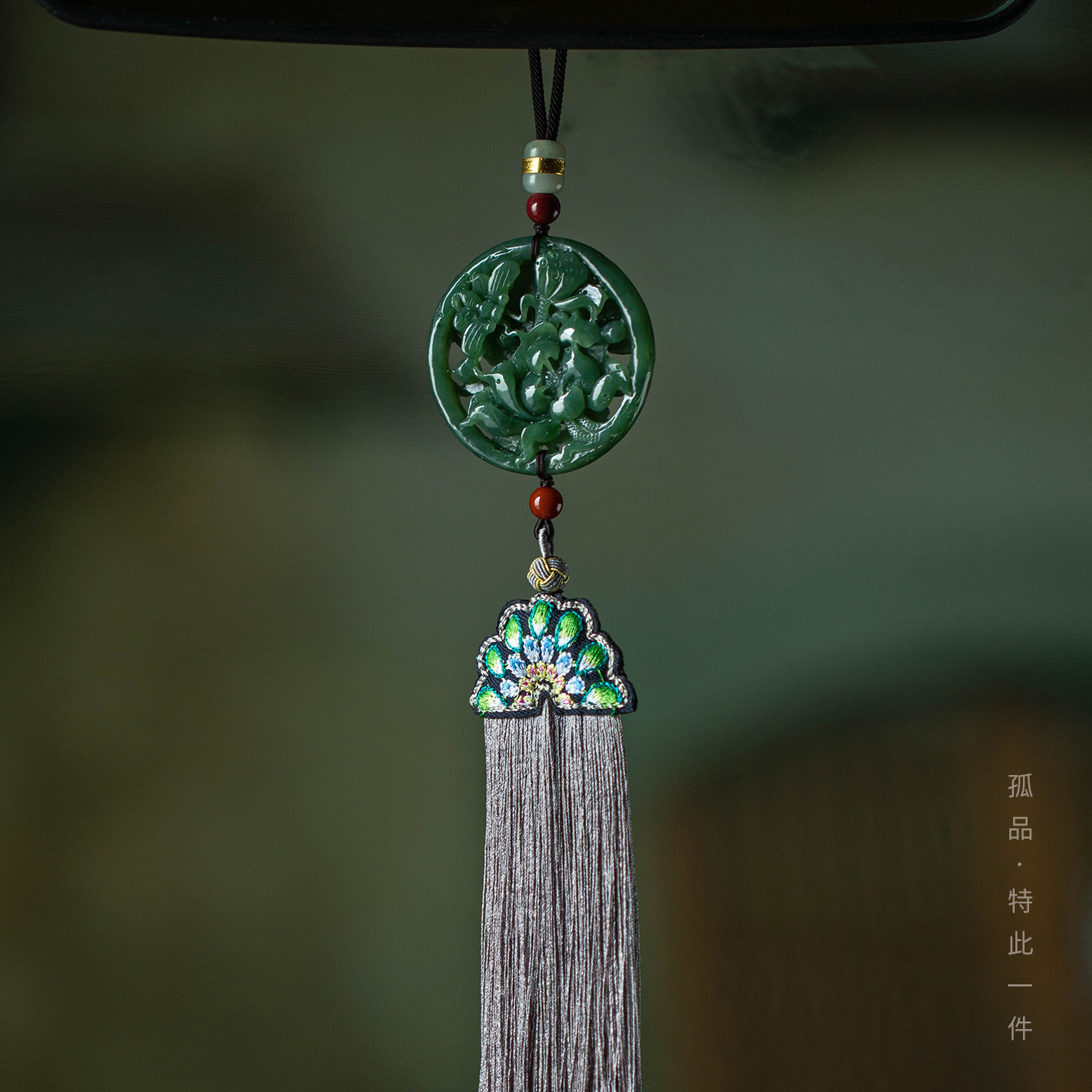 天然和田玉石汽车挂件刺绣流苏车内挂饰高级玉牌一物一证 孤品