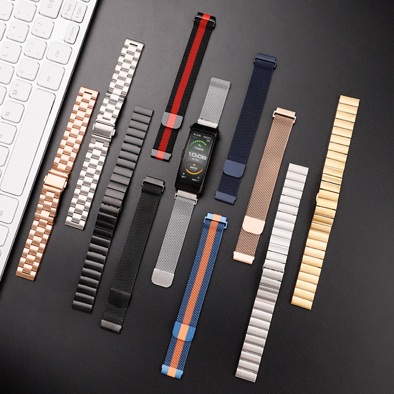 适用于华为手环b7表带米兰尼斯B6磁吸金属腕带B5智能运动b3时尚 三株钢带男女士表链16mm配件 透气替换带B7新款