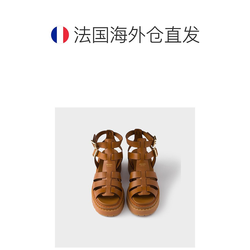 自营欧洲直邮Prada普拉达 女士皮革色小牛皮丝印徽标凉鞋