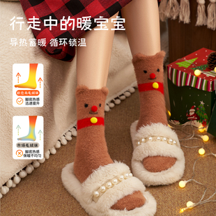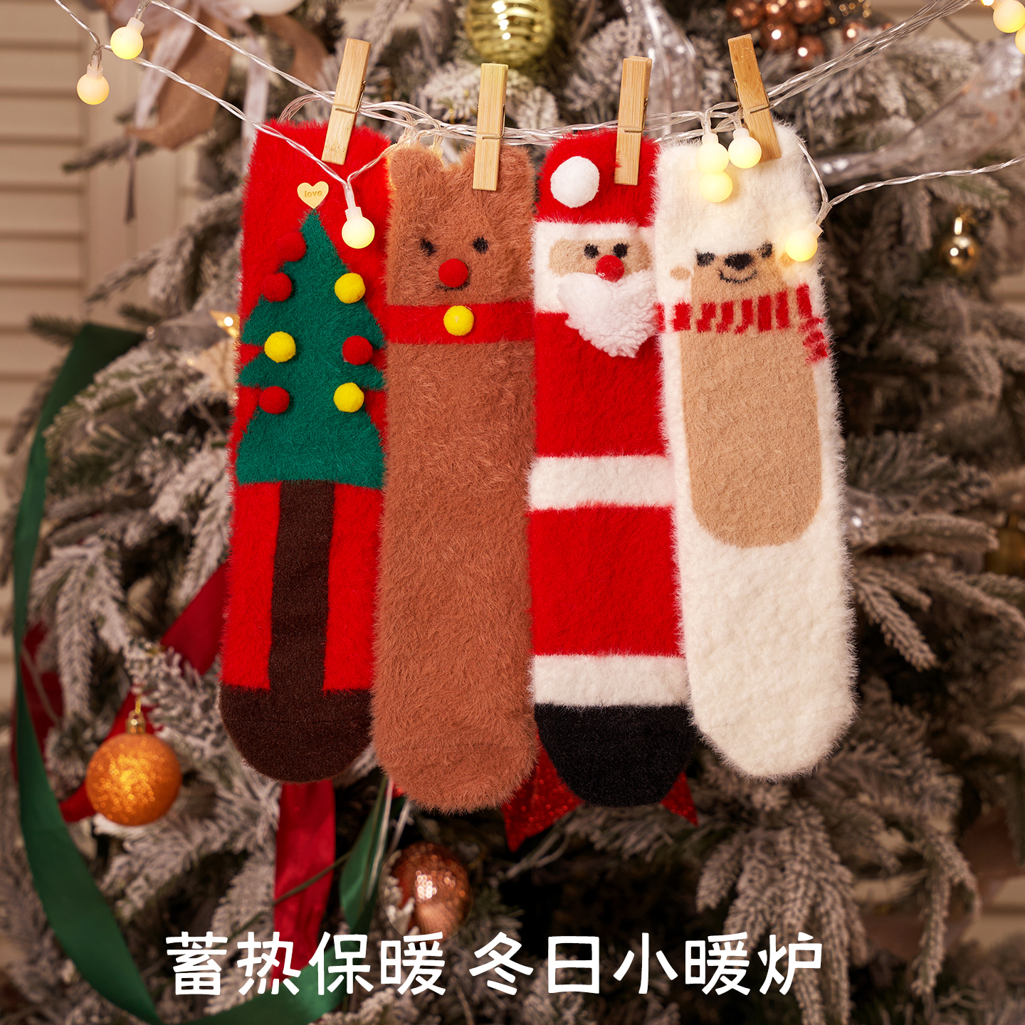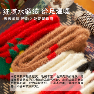 圣诞袜子女秋冬款 水貂绒中筒袜 可爱珊瑚绒袜子加厚加绒保暖礼盒装