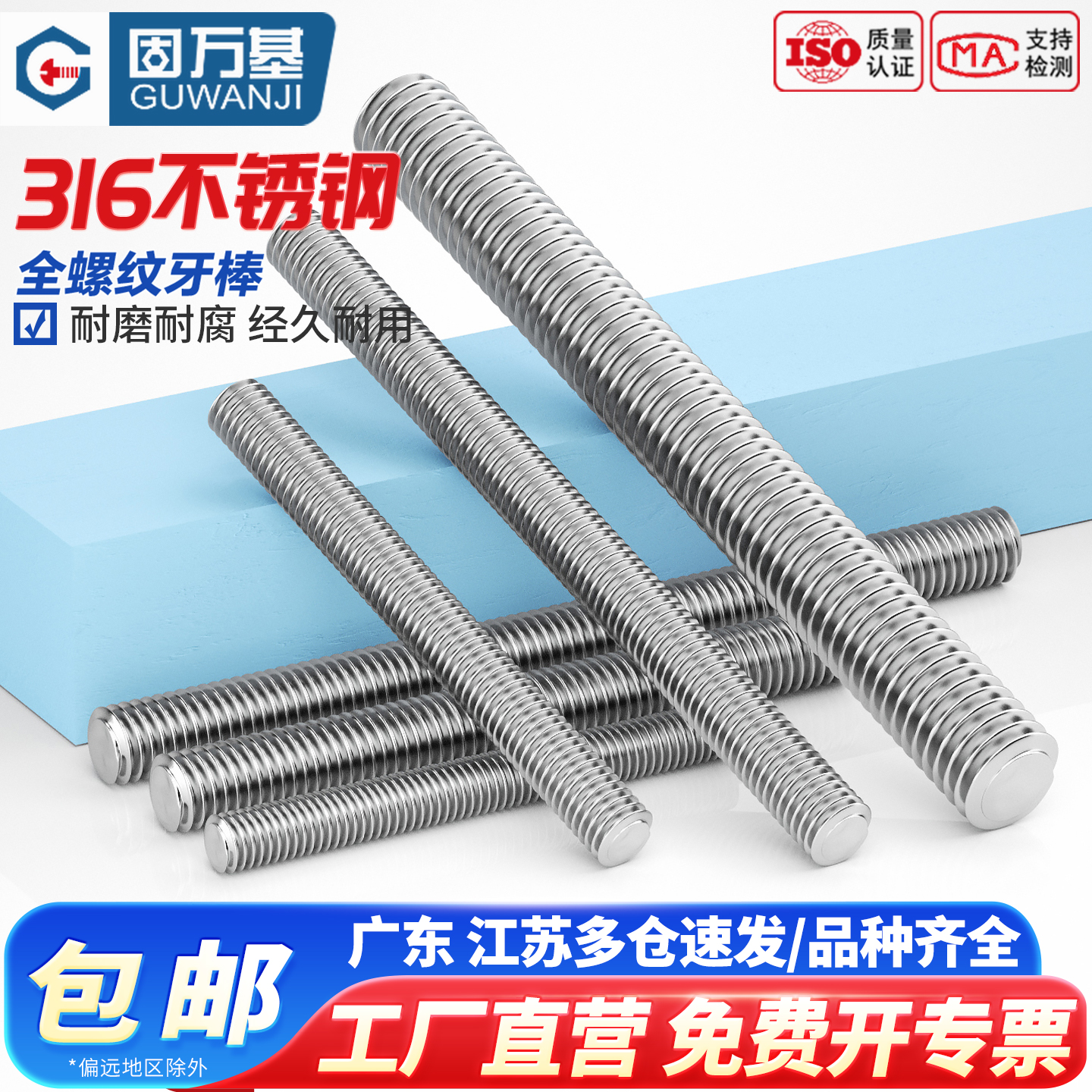 固万基316不锈钢牙条全螺纹丝杆通丝螺柱螺丝螺栓牙棒全牙M3 M20