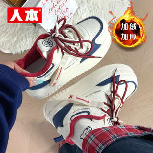 加厚保暖二棉百搭轻便厚底学生板鞋 新款 女2025冬季 人本加绒小白鞋