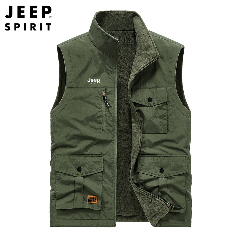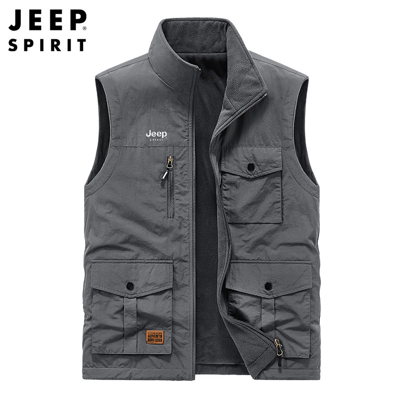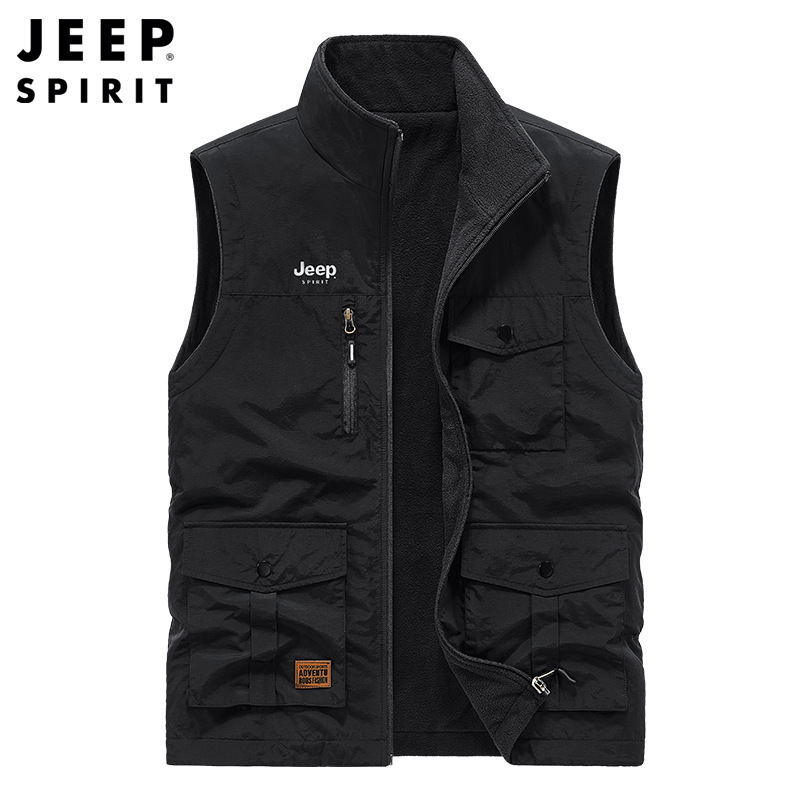 2306A 男士 JEEP吉普2024马甲常规多袋工装 两面穿加绒坎肩外套新款