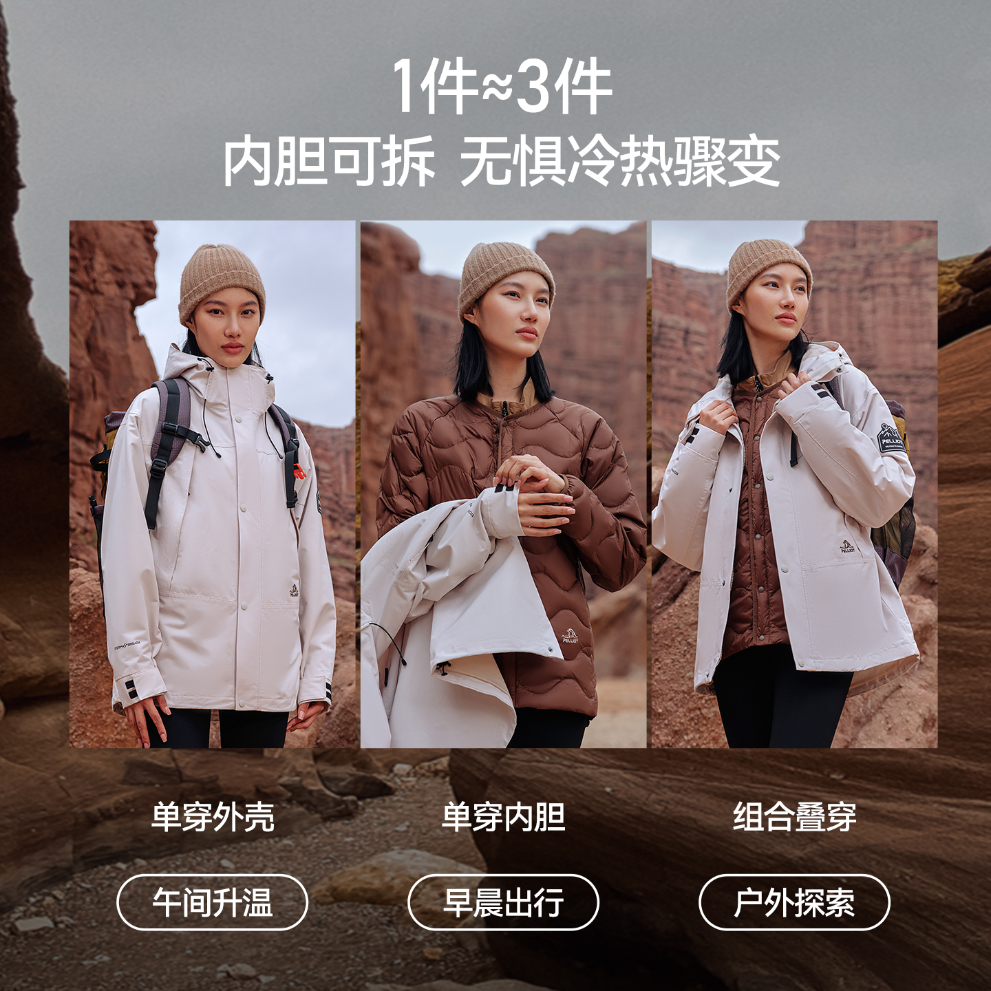 骆驼3514冲锋衣男三合一鹅绒羽绒服外套女防水登山服装 双11预售