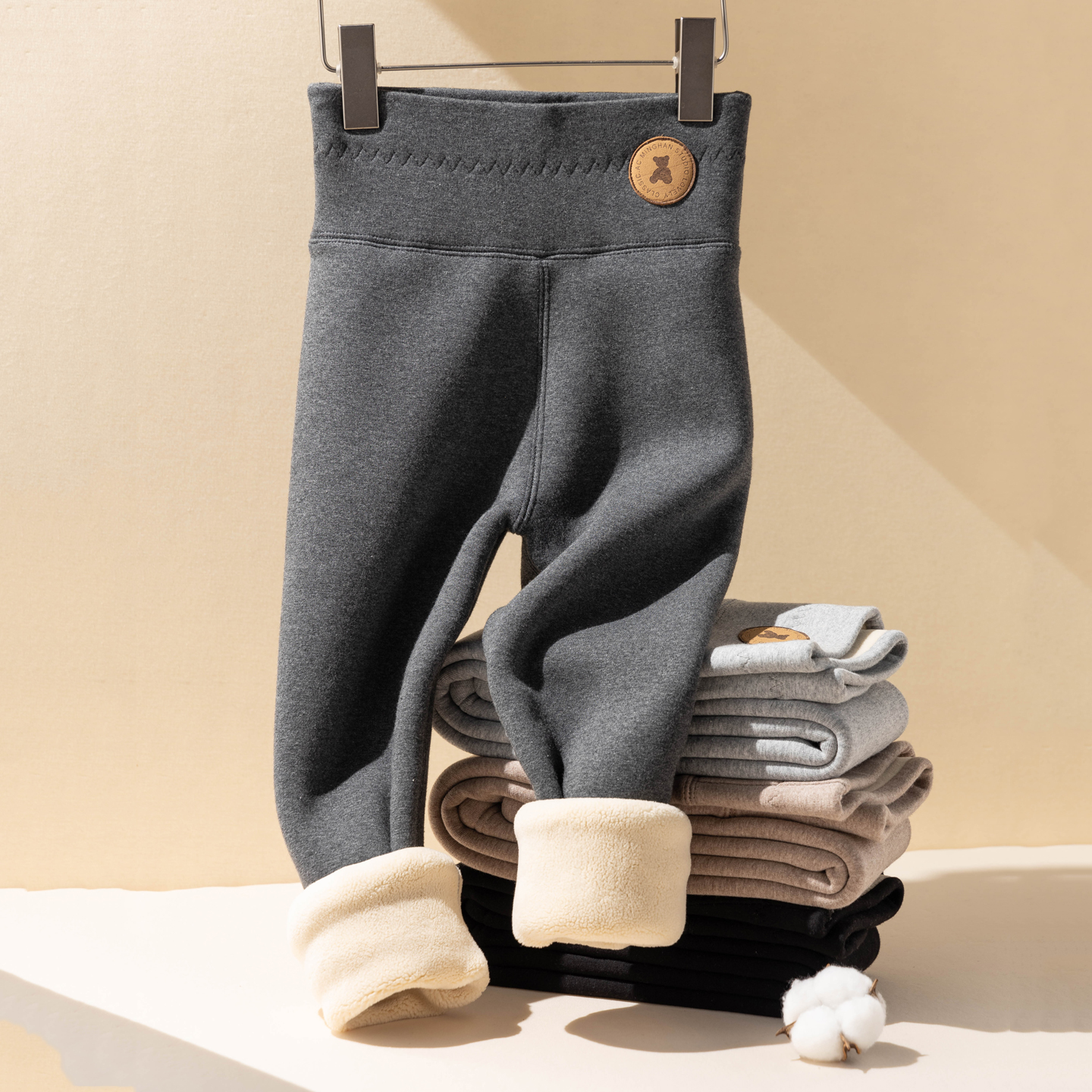 外穿加绒加厚儿童洋气纯棉女宝宝高腰一体绒保暖裤 女童打底裤 冬款