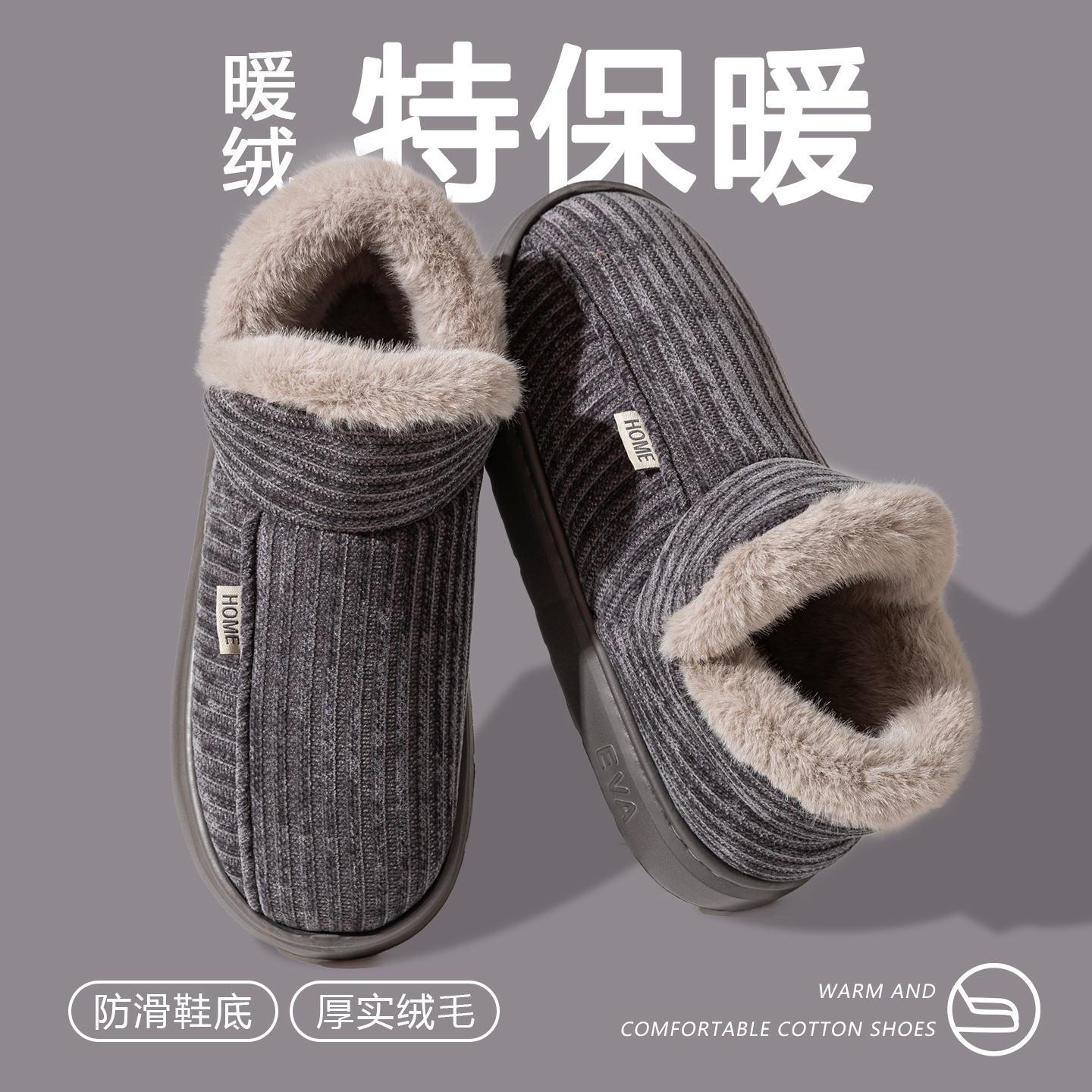 室内家居加绒保暖防滑情侣棉鞋 厚底棉拖鞋 冬季 2025新款 女外穿 男士