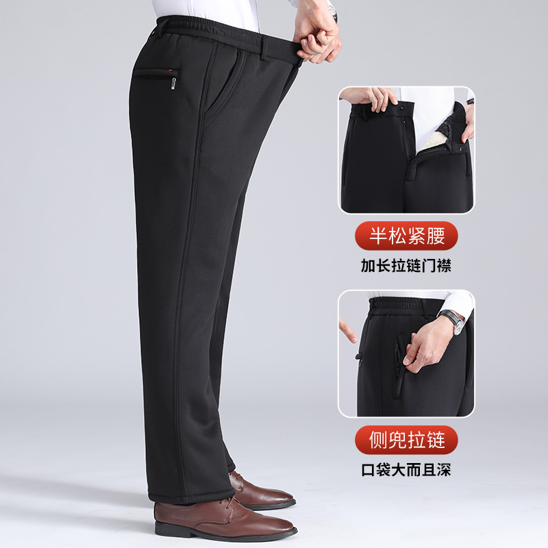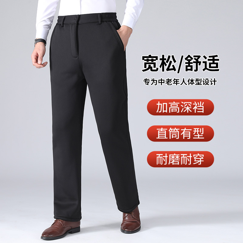 子男棉裤 西裤 外穿秋冬季 高腰宽松休闲裤 中老年男士 爸爸加绒加厚裤