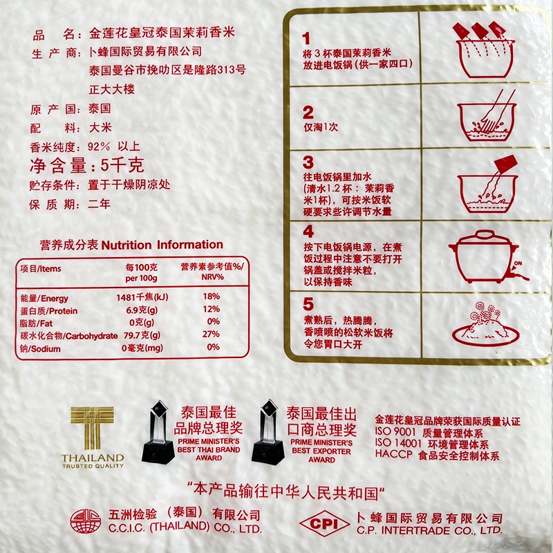 泰国原装 进口金莲花皇冠茉莉香米大米5kg长粒米香米炒饭米商用
