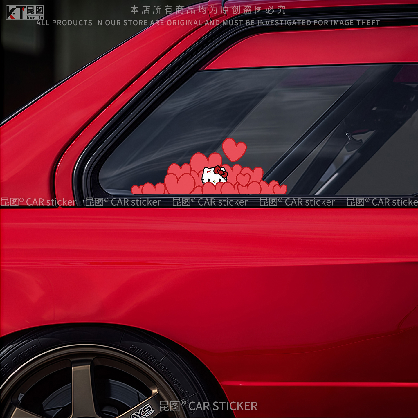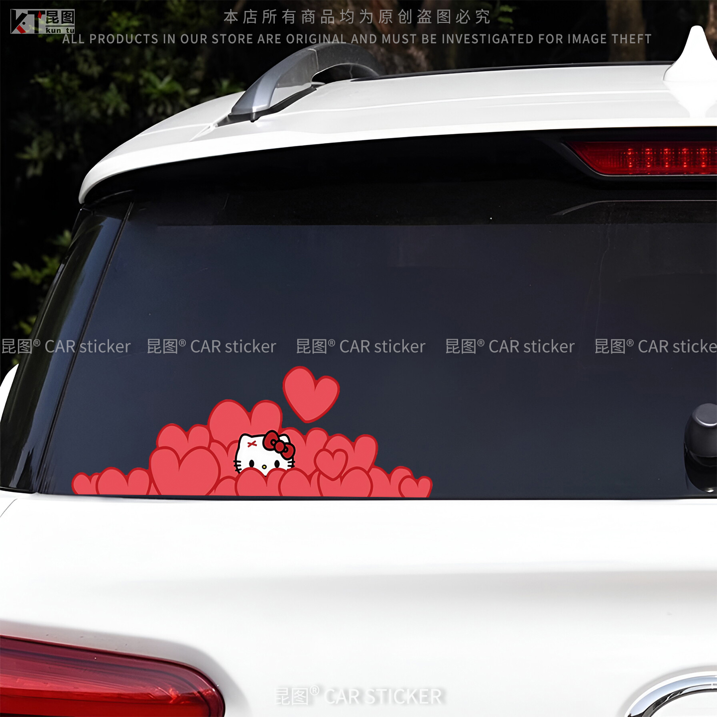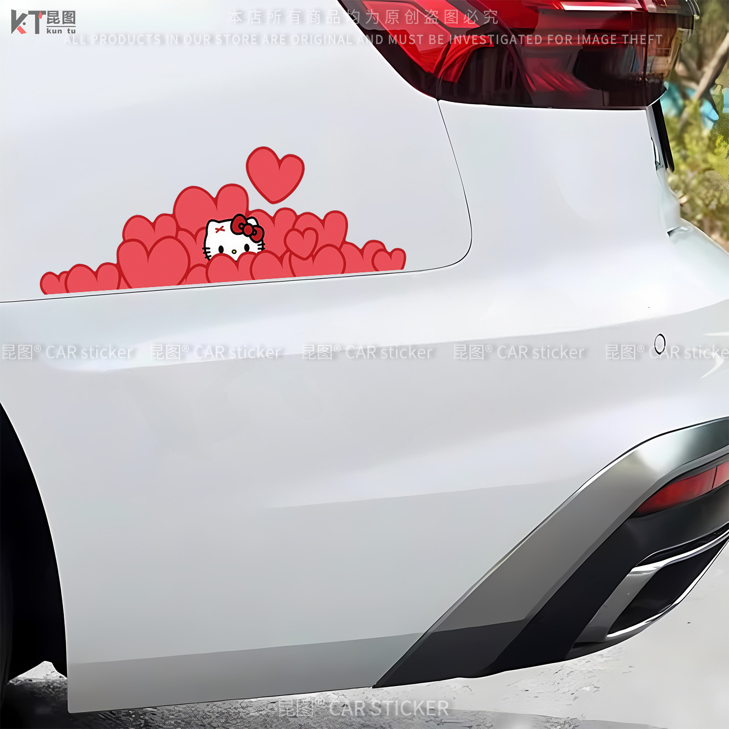 爱心KT猫可爱卡通汽车贴纸车门车身车尾长条划痕遮挡装 饰电动车贴