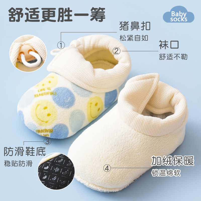 1岁新生儿宝宝防滑软底室内保暖地板袜 加绒加厚0 婴儿学步鞋 冬季