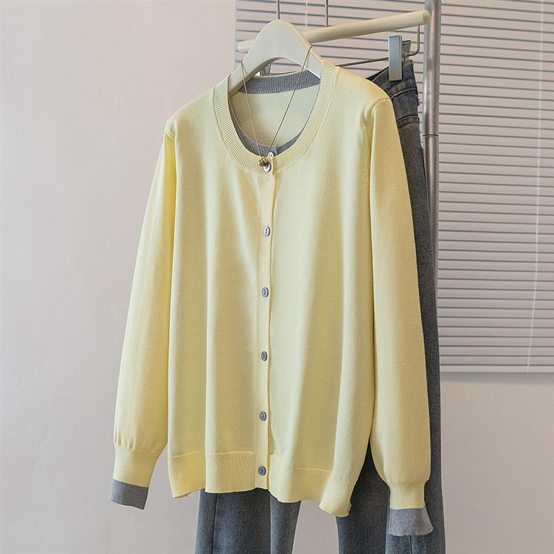 大码 毛衣女2025秋季 胖mm显瘦设计感内搭 藏青色假两件针织开衫 新品