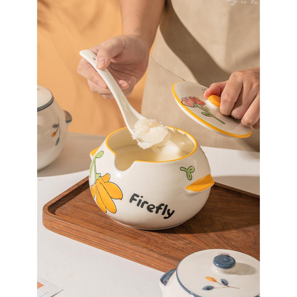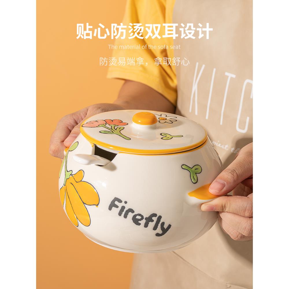 双耳装 猪油罐子家用陶瓷辣子专用耐高温辣椒油罐厨房带盖调味料罐