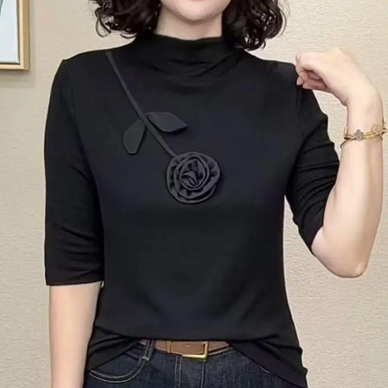 女早秋新款 推荐 打底小衫 高级轻奢气质中袖 百搭显瘦小个子外搭 时尚