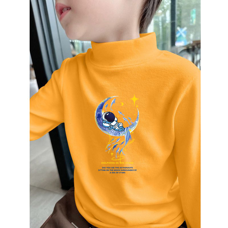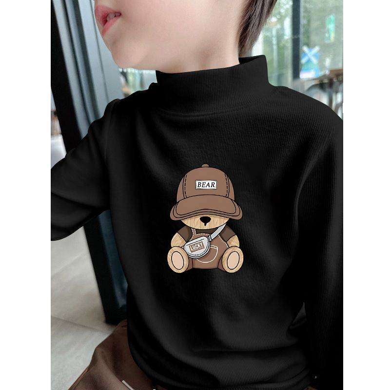 儿童加厚内搭t恤男宝宝双面德绒 2025新款 男童半高领打底衫 秋冬季