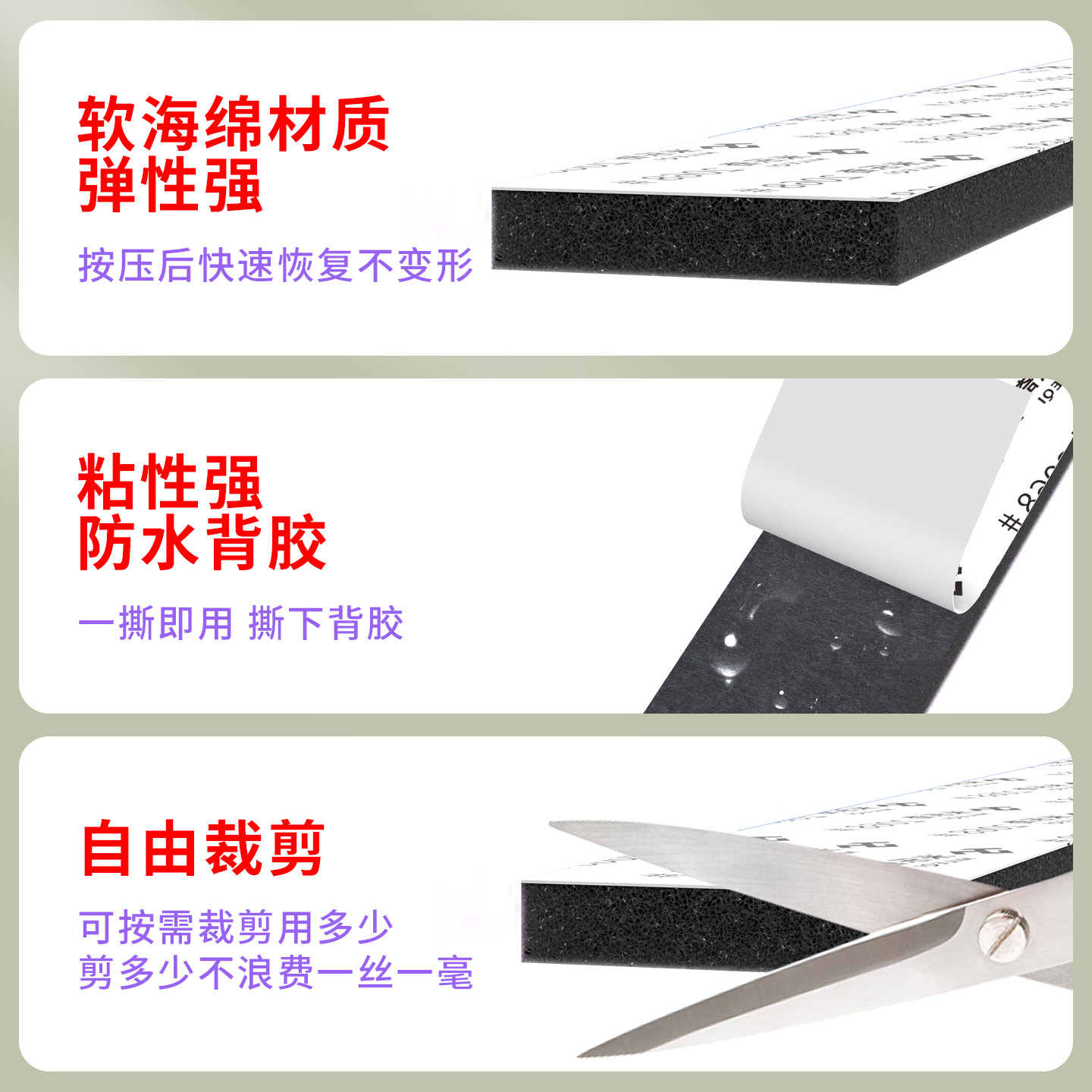 消音降噪柔软单面自粘泡棉电器产品用防尘隔音减震门窗门缝汽车内饰线束异响静音喇叭音响密封相机遮光海绵条