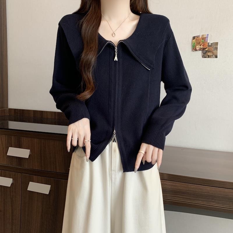 1008n 女秋冬外穿减龄长袖 秋冬季 胖mm宽松遮肉显瘦娃娃领针织开衫