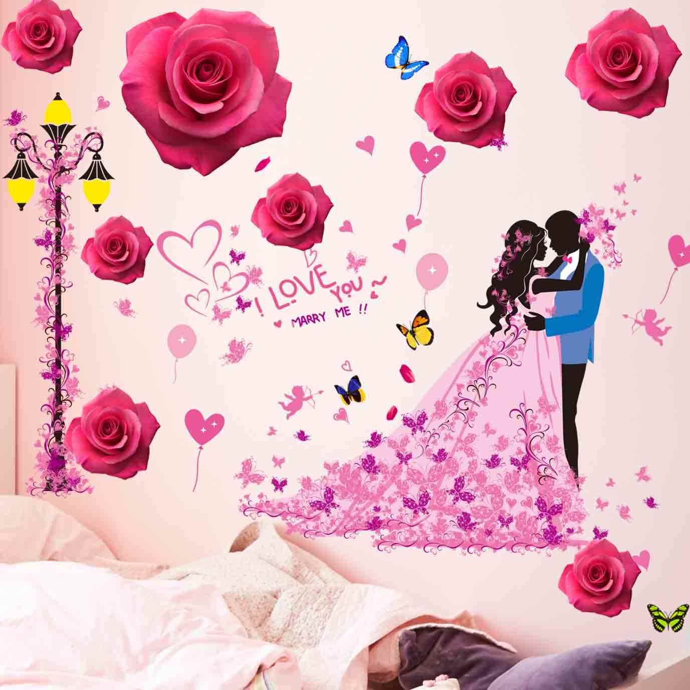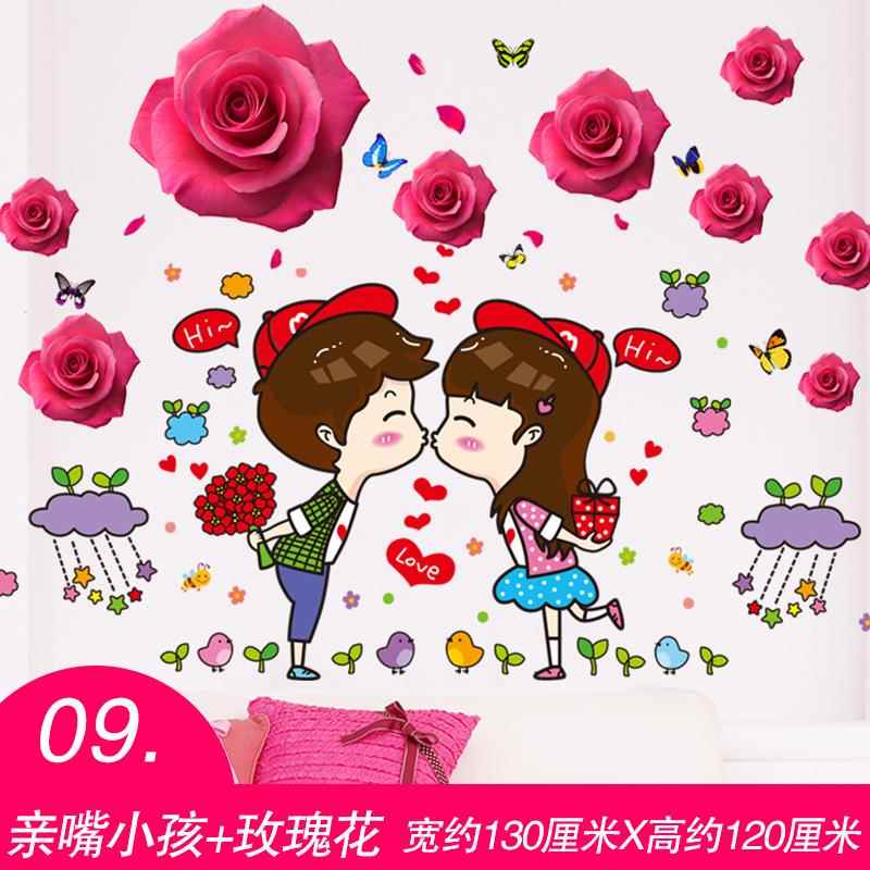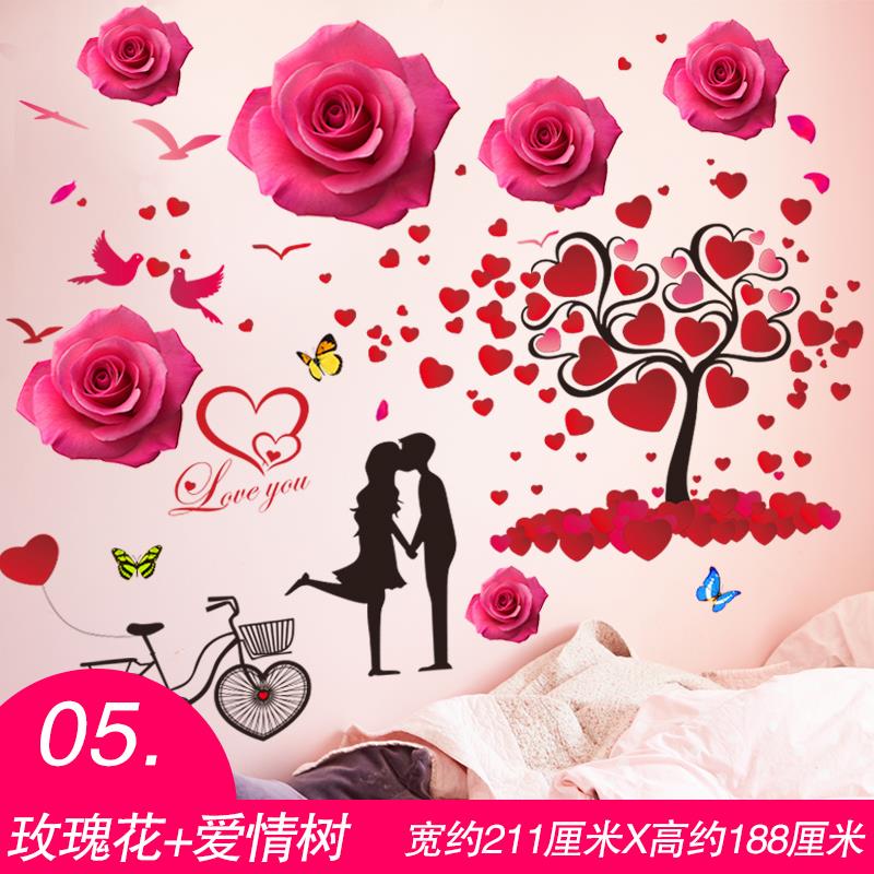 温馨卧室房间床头墙上墙面布置装 饰玫瑰花墙贴纸贴画壁纸自粘客厅