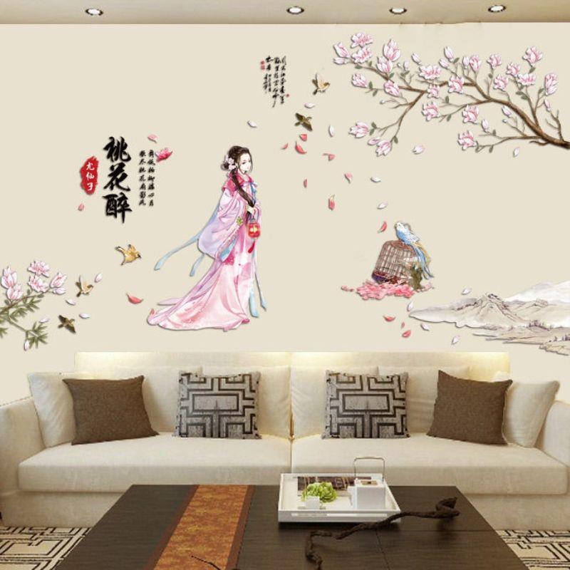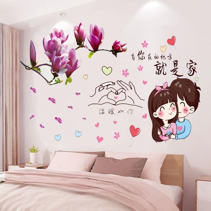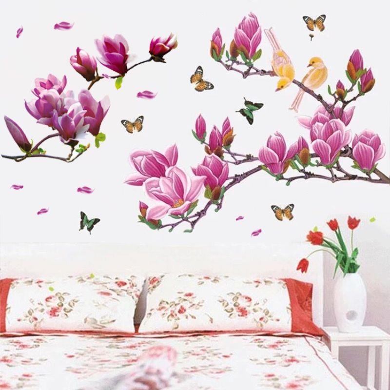 玉兰花客厅电视背景墙贴画 饰 画自粘中国风墙贴纸卧室床头温馨装