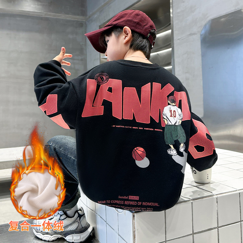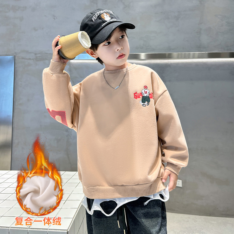 冬季 儿童装 中大童加厚男孩秋冬款 加绒卫衣2025新款 上衣潮 男童冬装