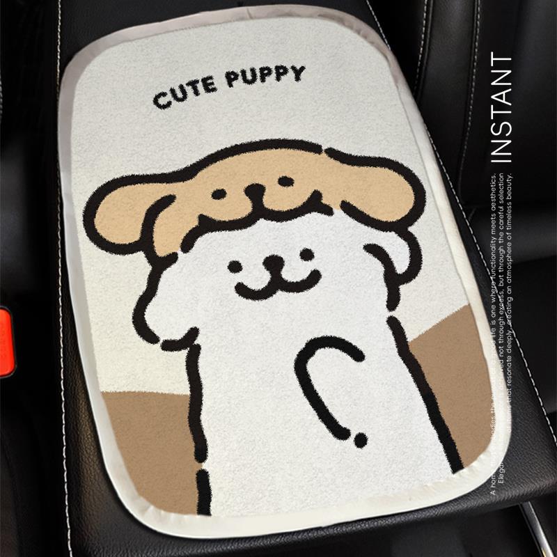 可爱小狗汽车扶手箱垫夏车载中央保护套通用冰豆豆扶手套车内装 饰