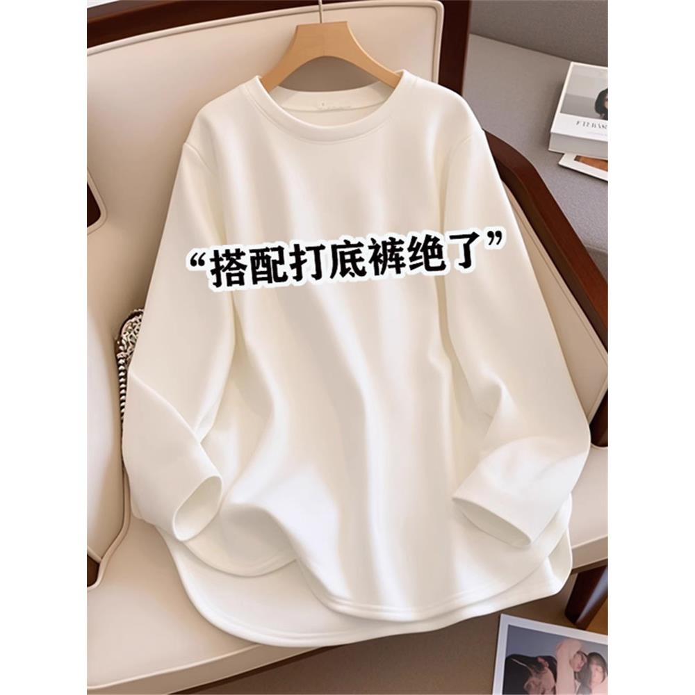 T恤鲨鱼裤 秋冬季 长袖 女内搭磨毛中长款 搭配1011n 加绒白色打底衫