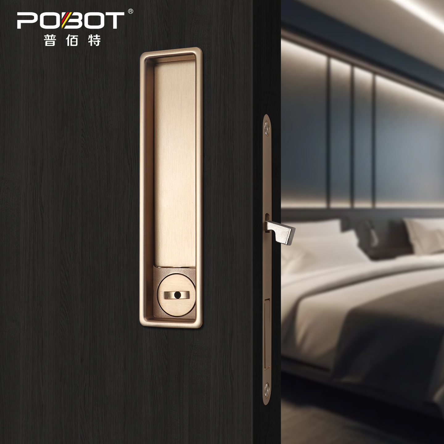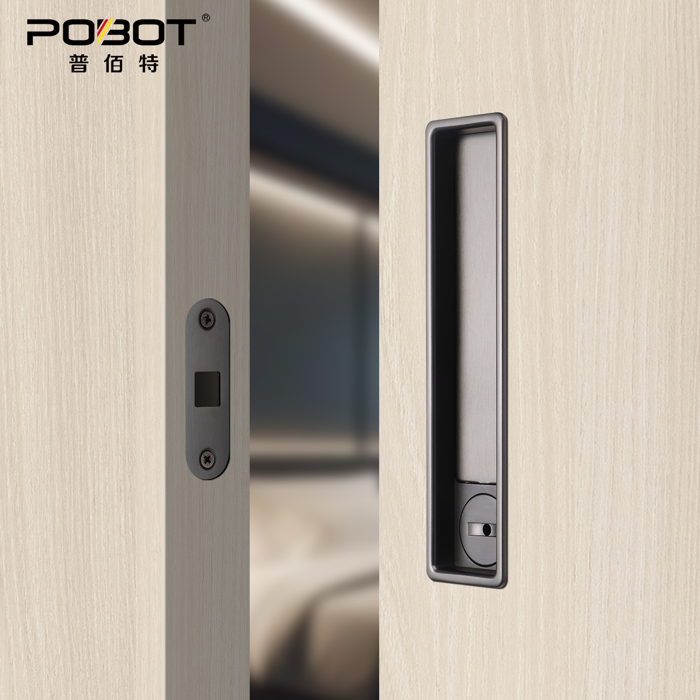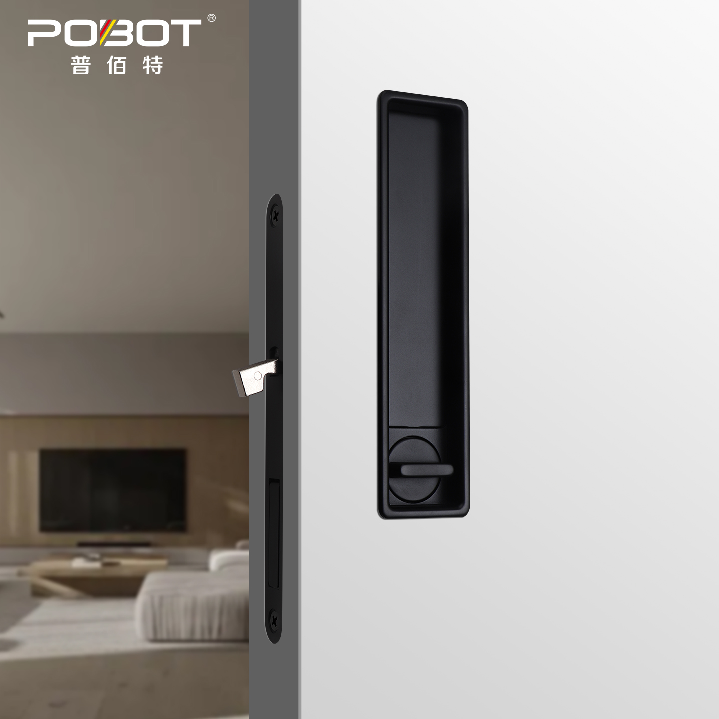 普佰特口袋门推拉门锁木移门锁室内吊趟门带侧装 拉手厨房隐形钩锁