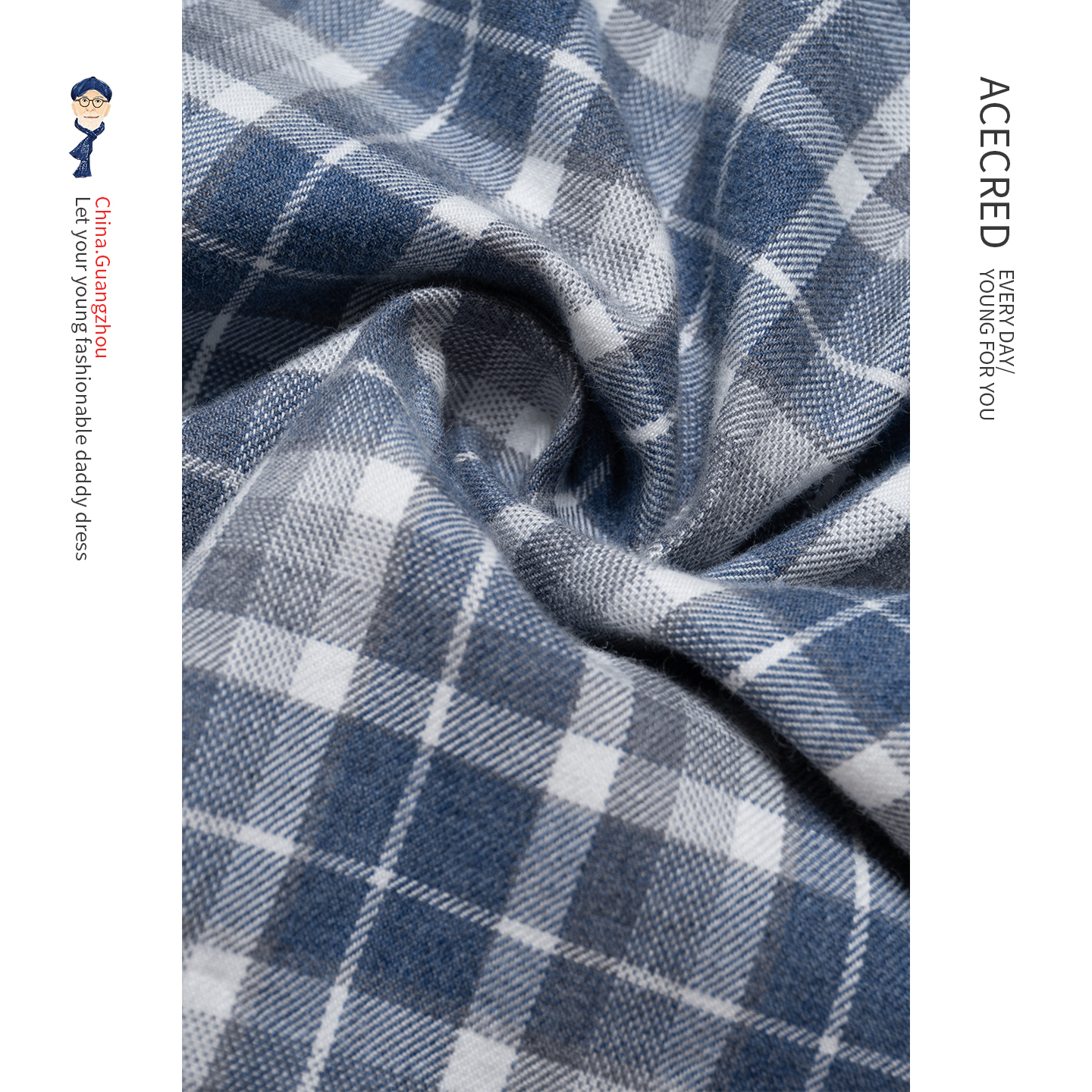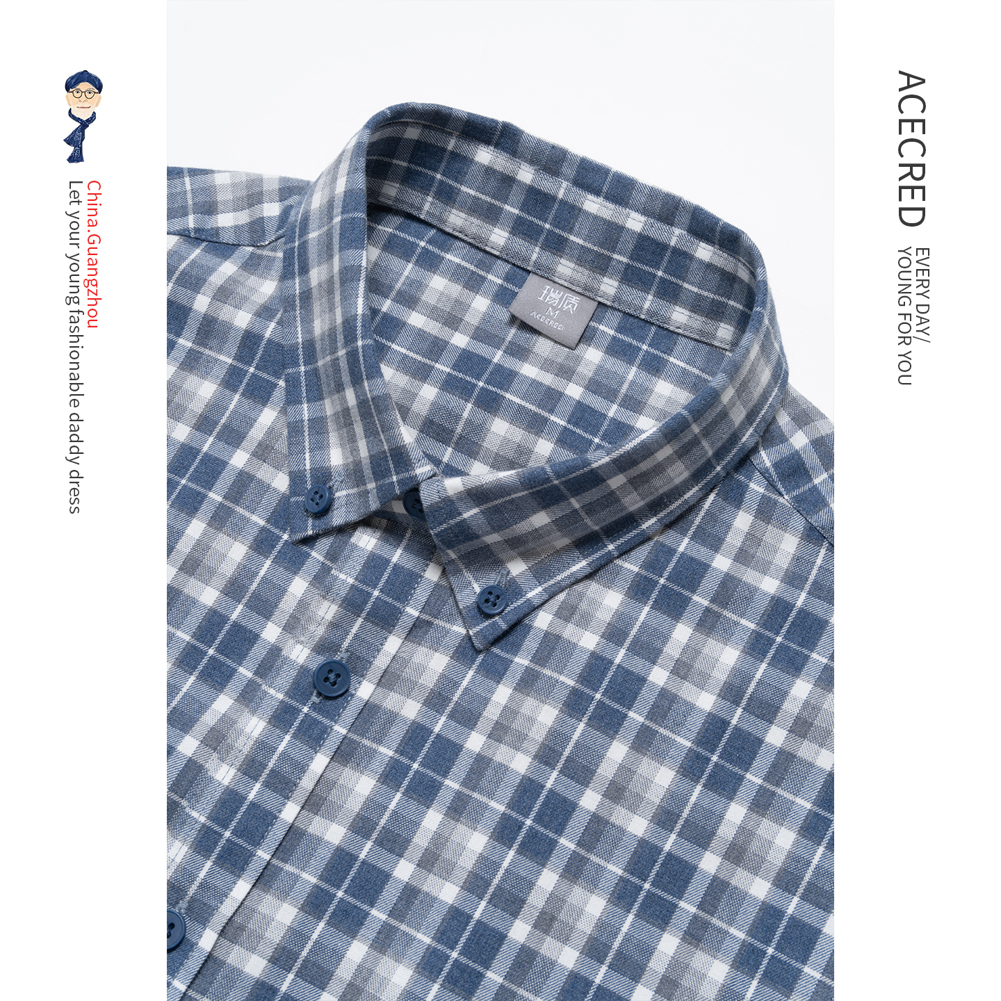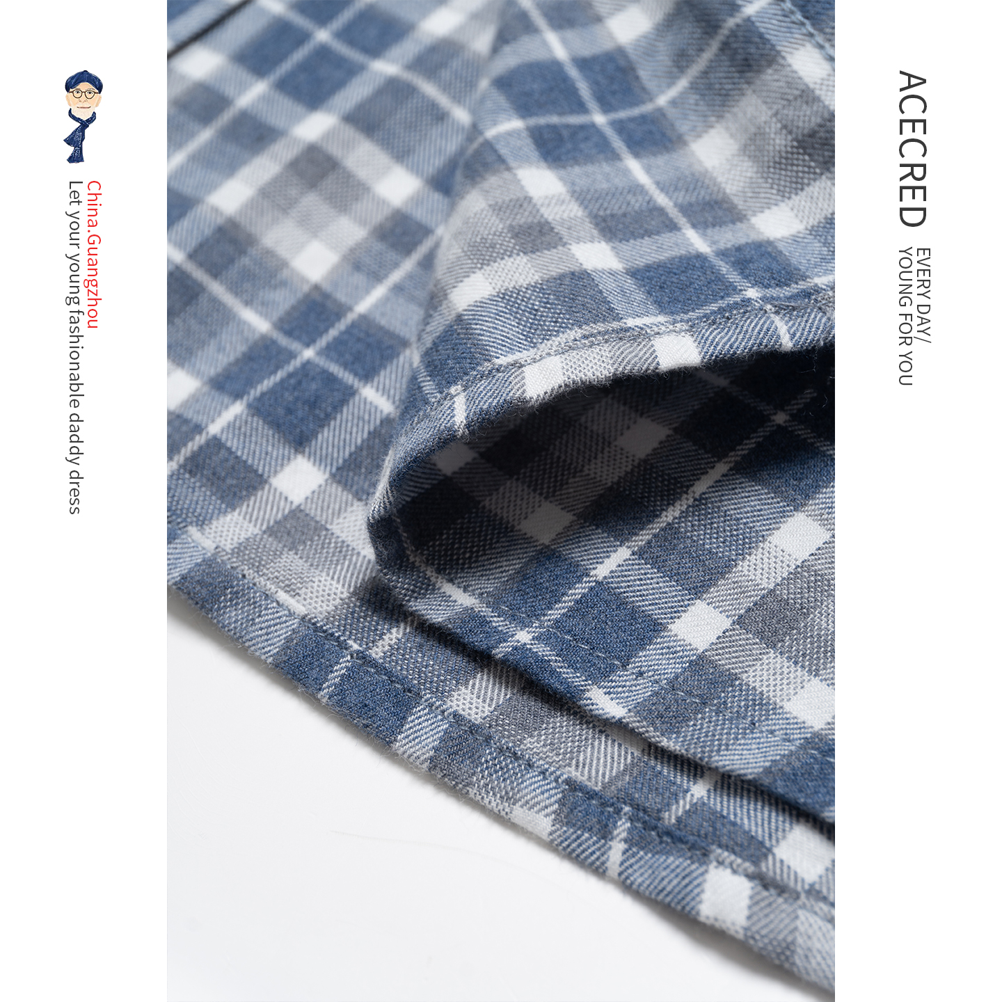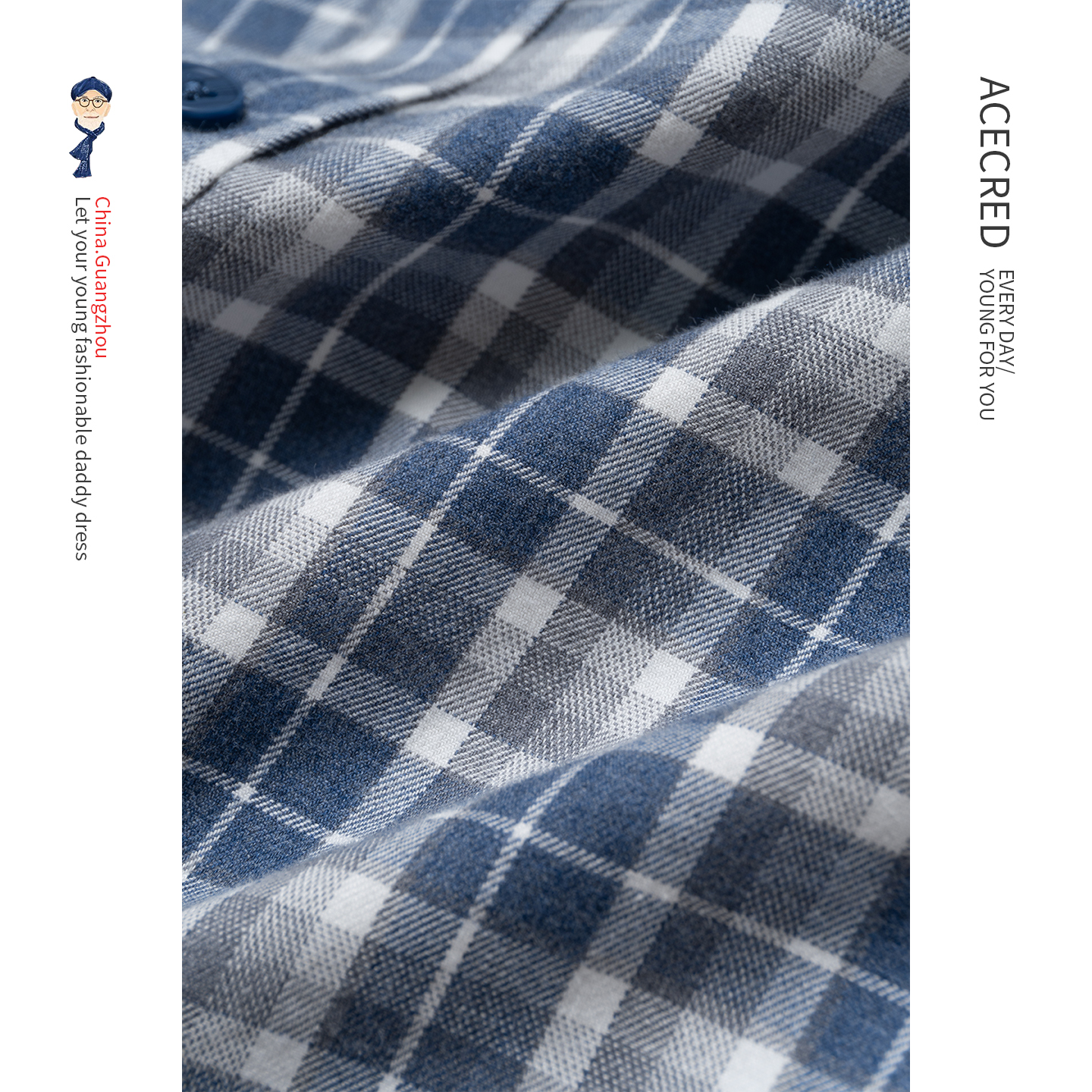 男中老年人宽松格子衬衣老人爷爷衣服 衬衫 爸爸秋装 纯棉磨毛长袖