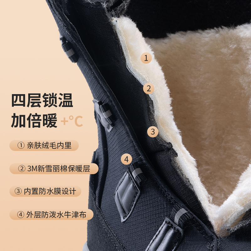 厚底登山靴子防寒加绒保暖徒步鞋 冬季 新款 骆驼雪绒户外雪地靴女款
