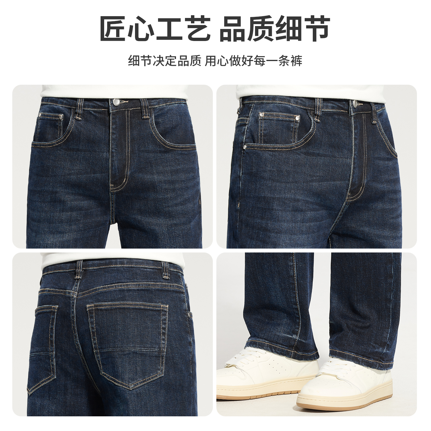 简圣 弹力休闲天丝长裤 宽松版 男士 莱赛尔直筒牛仔裤 JIELNSELN