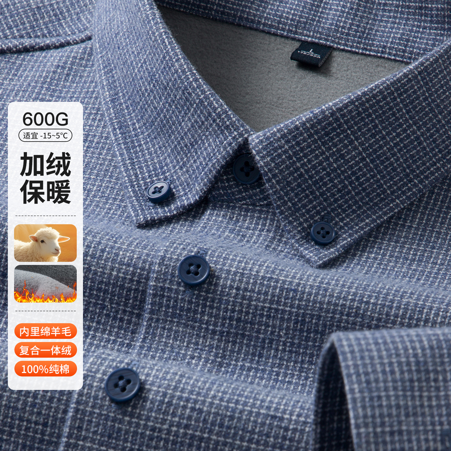 新款 磨毛加绒加厚保暖衬衣休闲外套男装 男士 衬衫 纯棉长袖 2025冬季